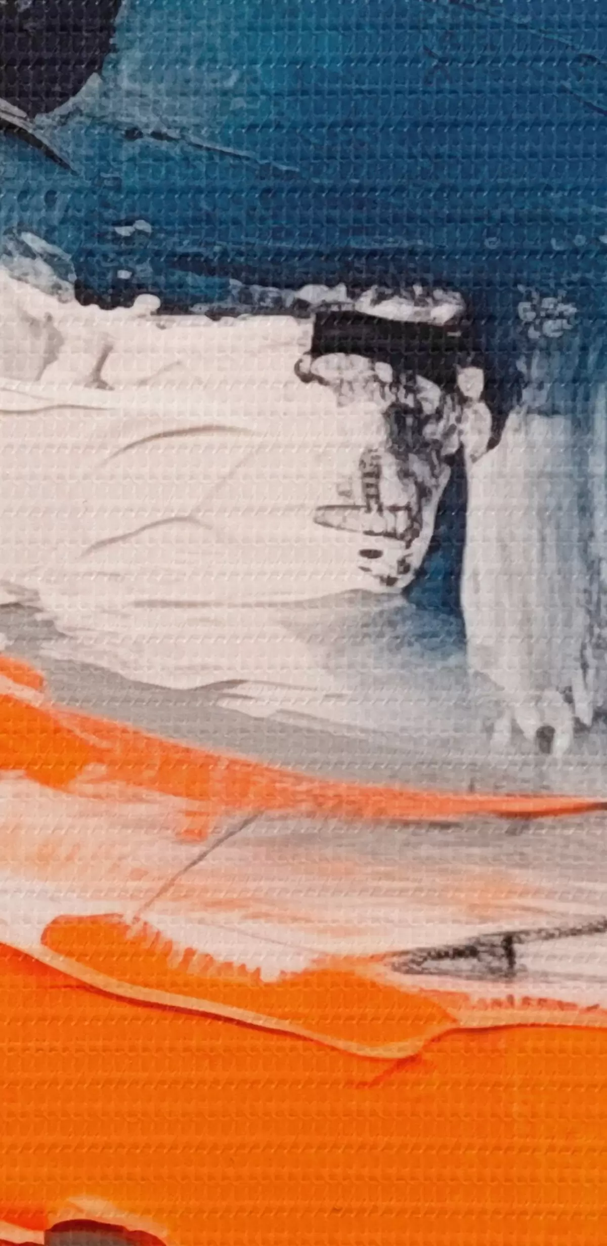 Smalkais diegu pinums uz šī audekla atgādina profesionālu mākslinieku audeklu virsmu.