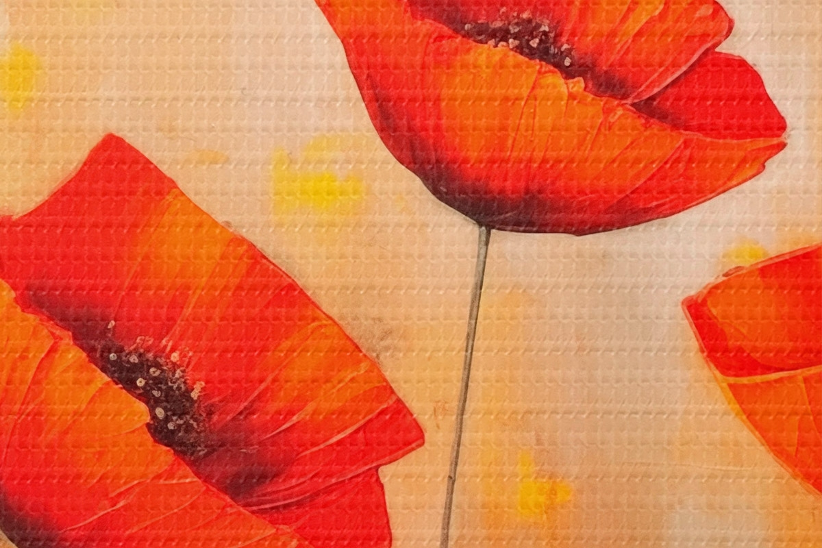 Smalkais diegu pinums uz šī audekla atgādina profesionālu mākslinieku audeklu virsmu.