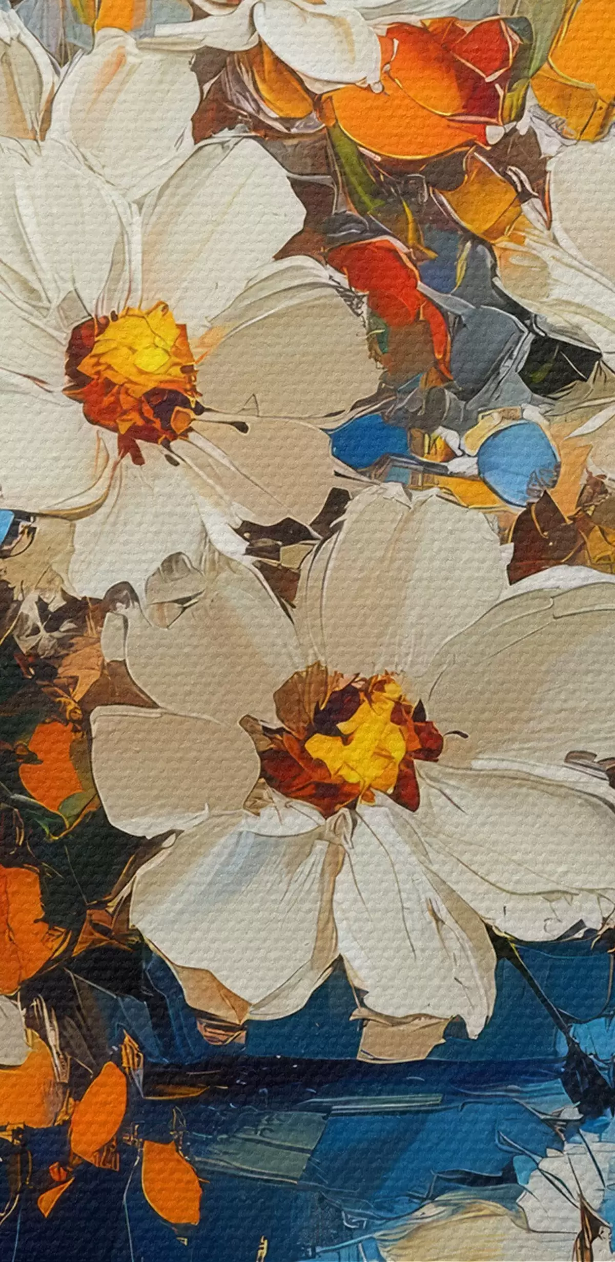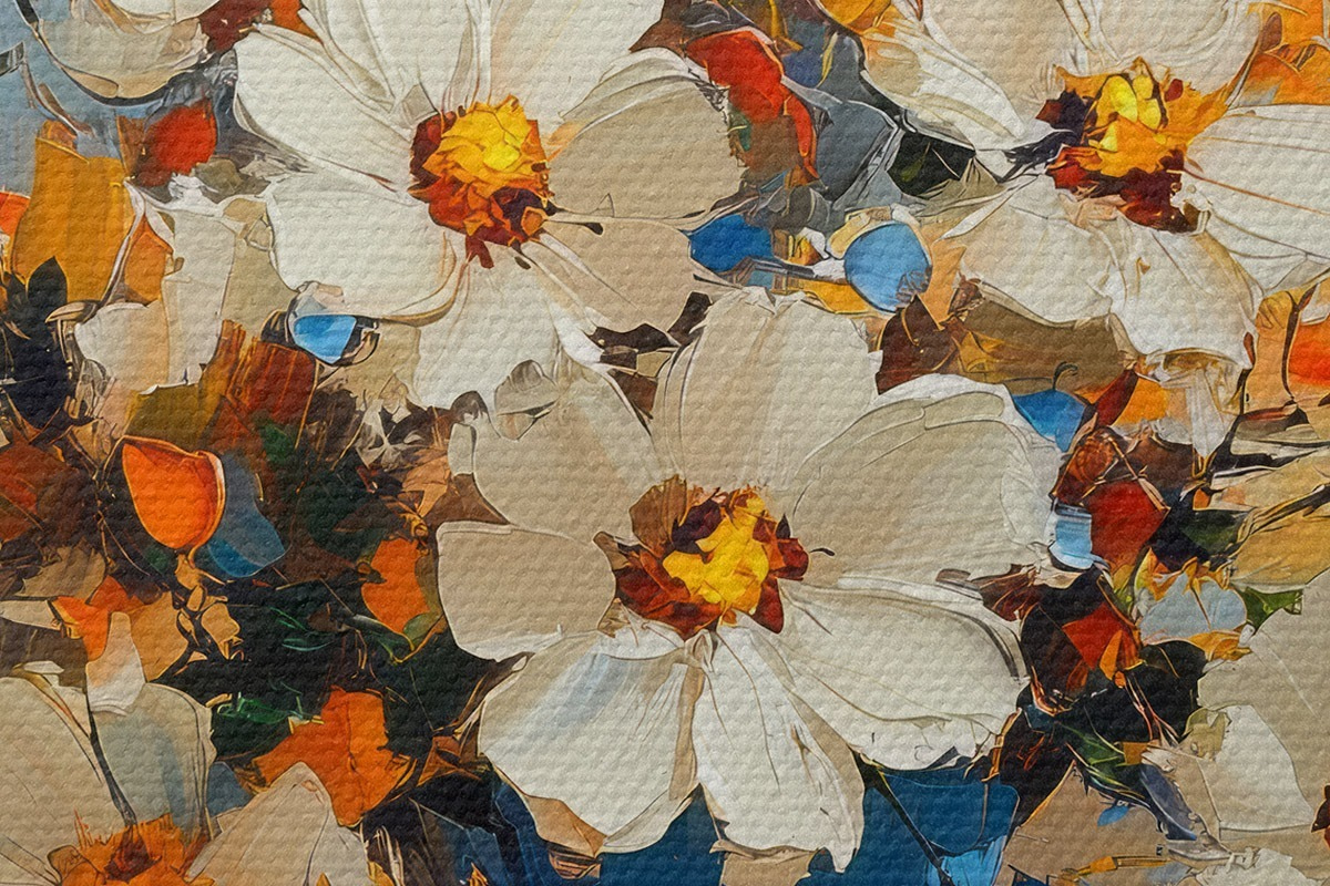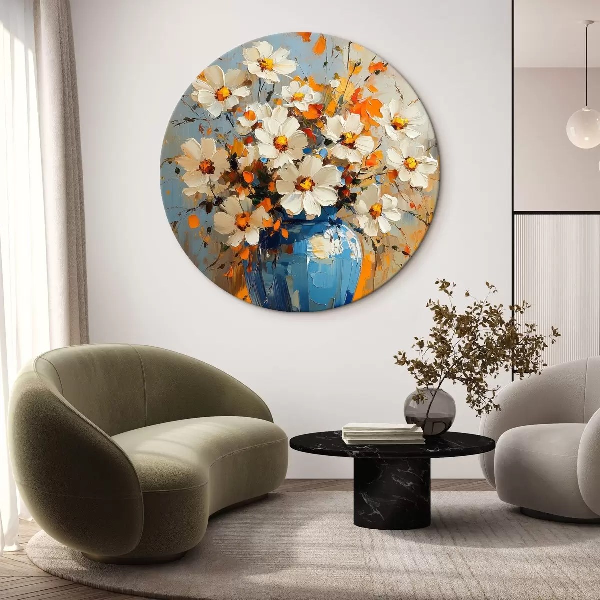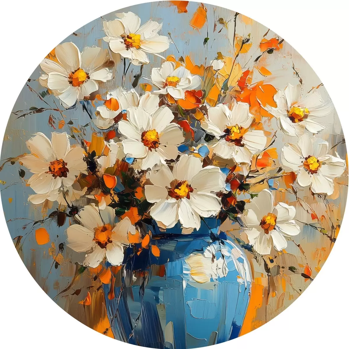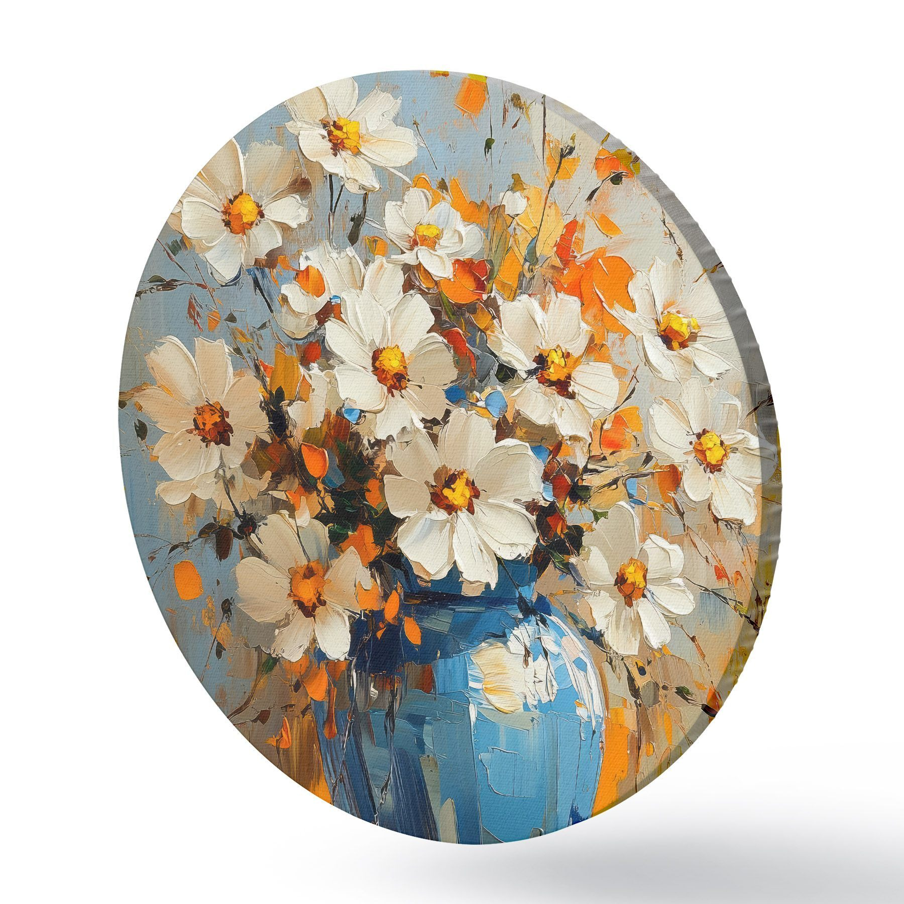 Apaļas gleznas Margrietiņu pušķis vāzē r42493