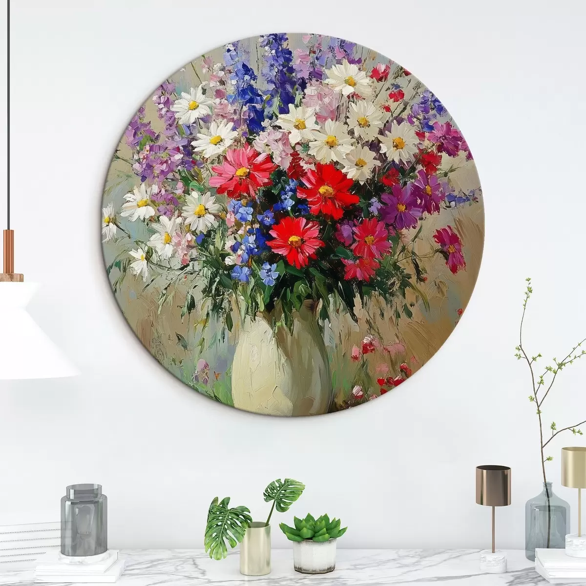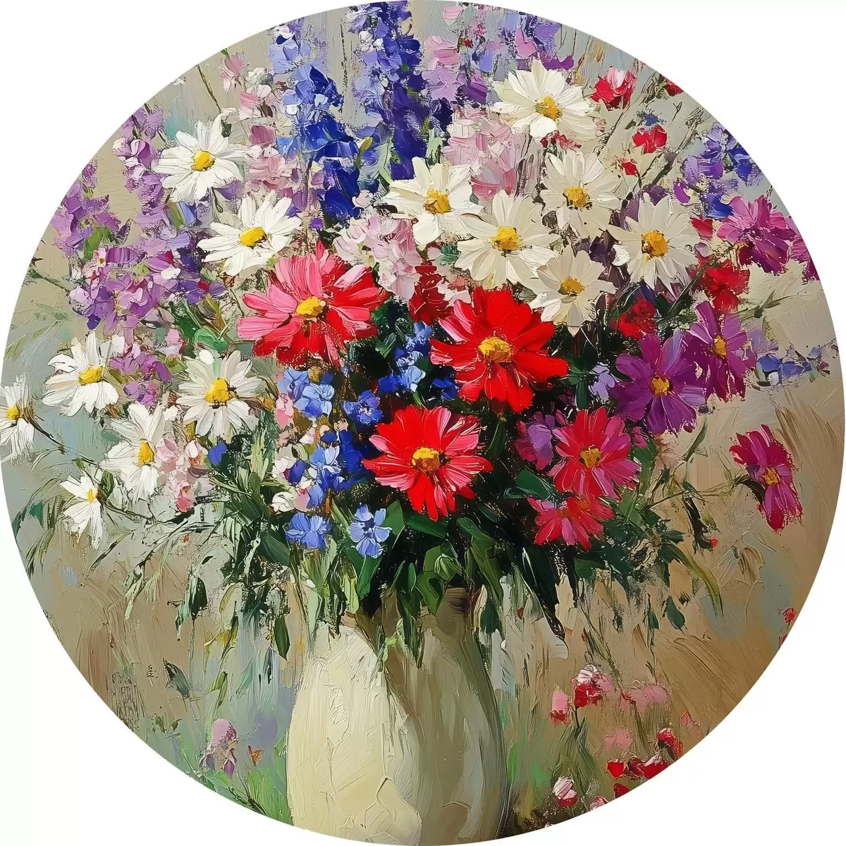 Apaļas gleznas Spilgts savvaļas ziedu pušķis r42498