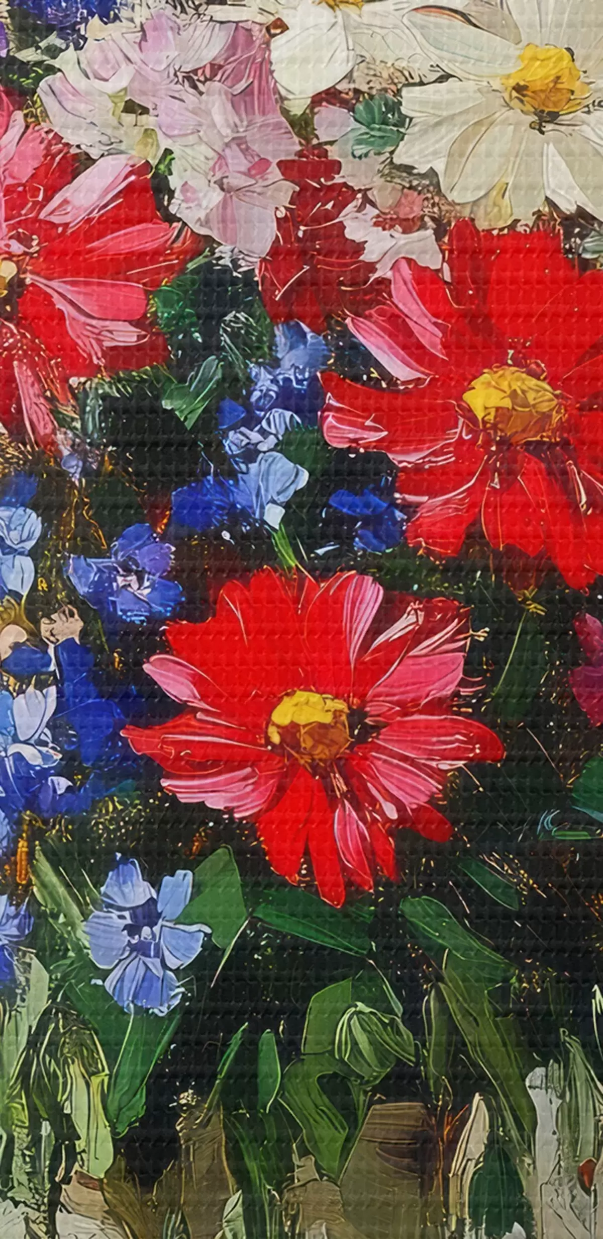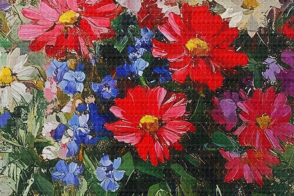 Smalkais diegu pinums uz šī audekla atgādina profesionālu mākslinieku audeklu virsmu.