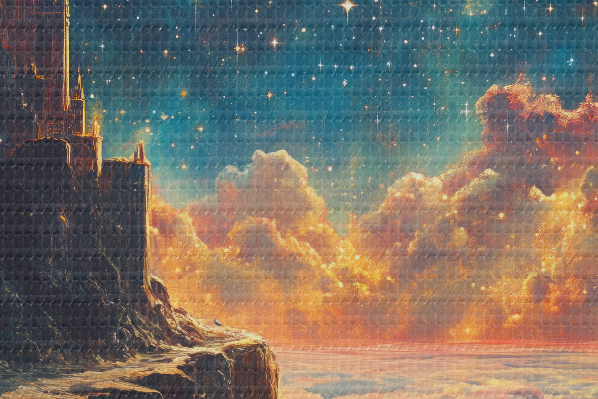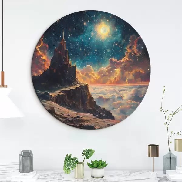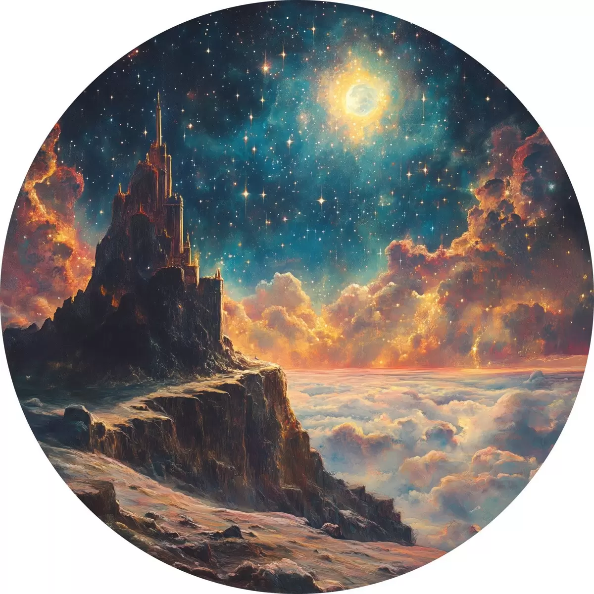 Apaļas gleznas Kalni un nakts zvaigžņotās debesis r42500