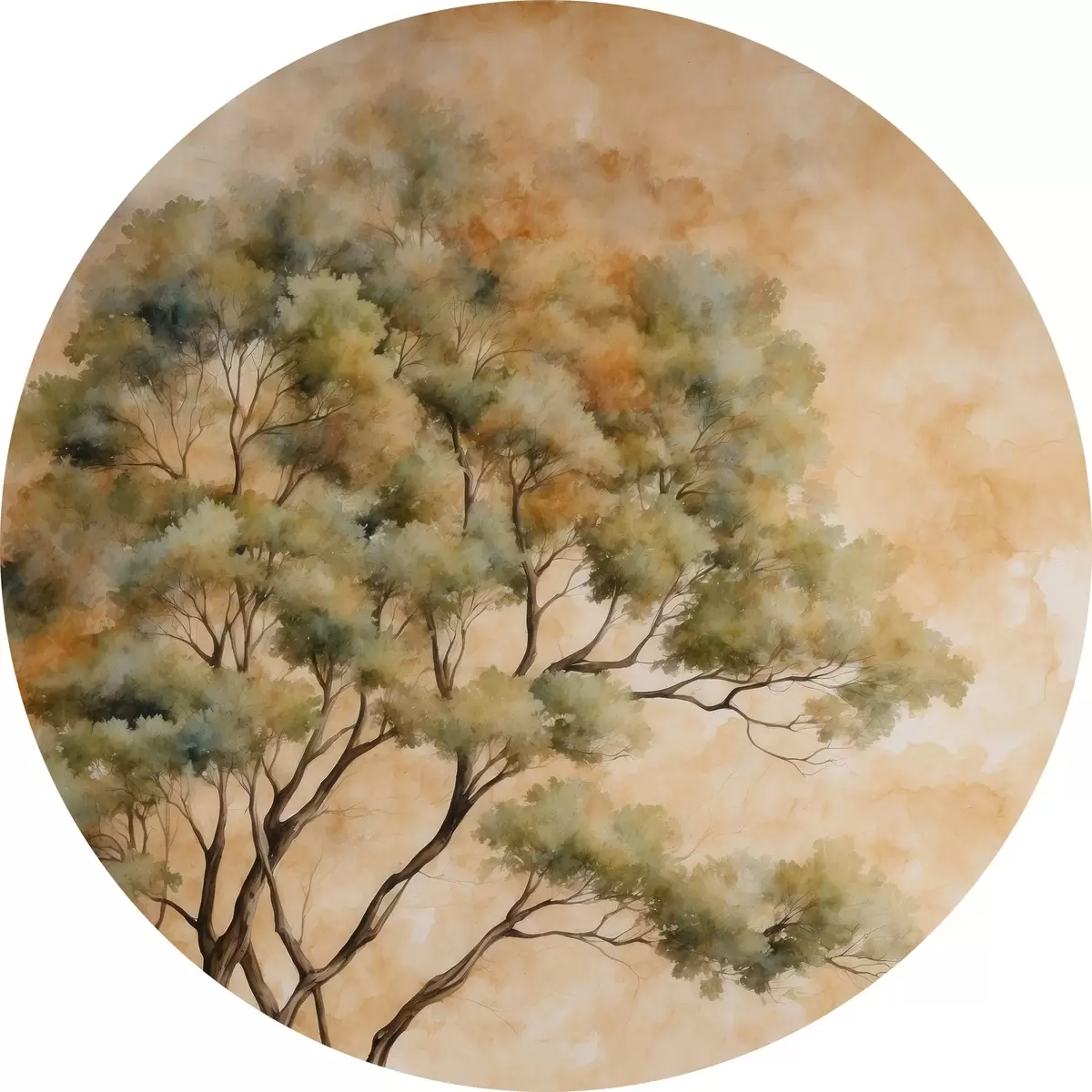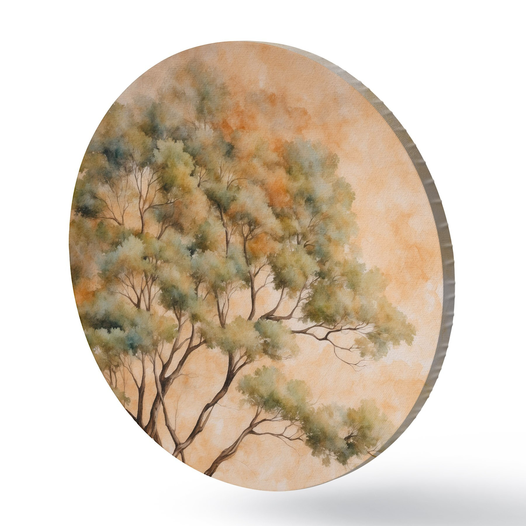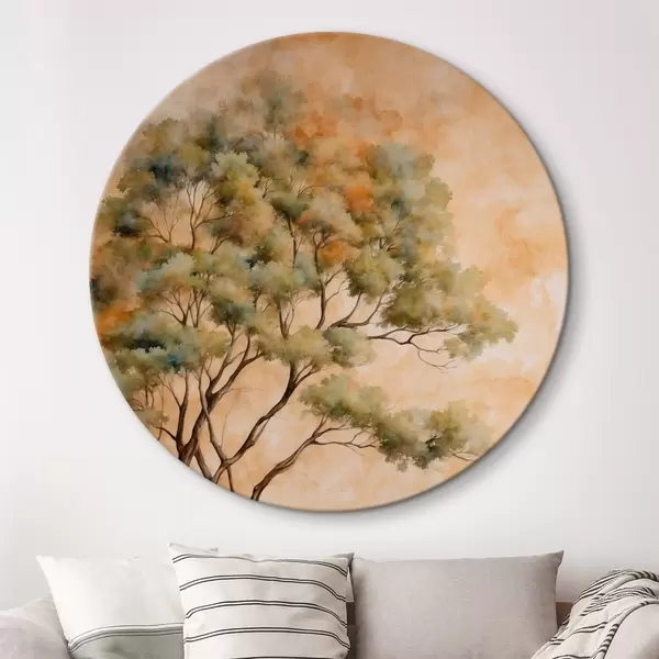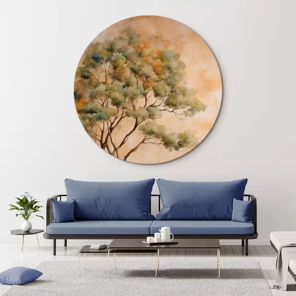 Apaļas gleznas Koks uz oranžā un baltā fona akvareļglezniecības stilā r42514