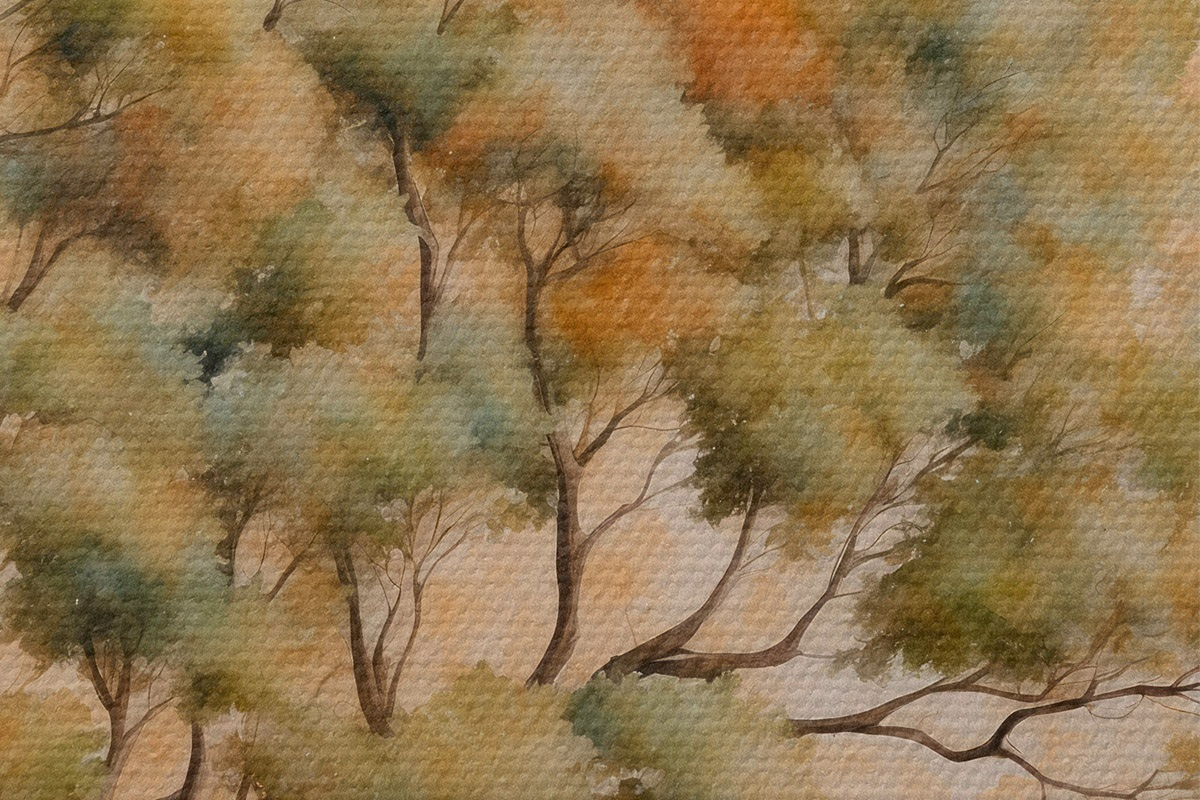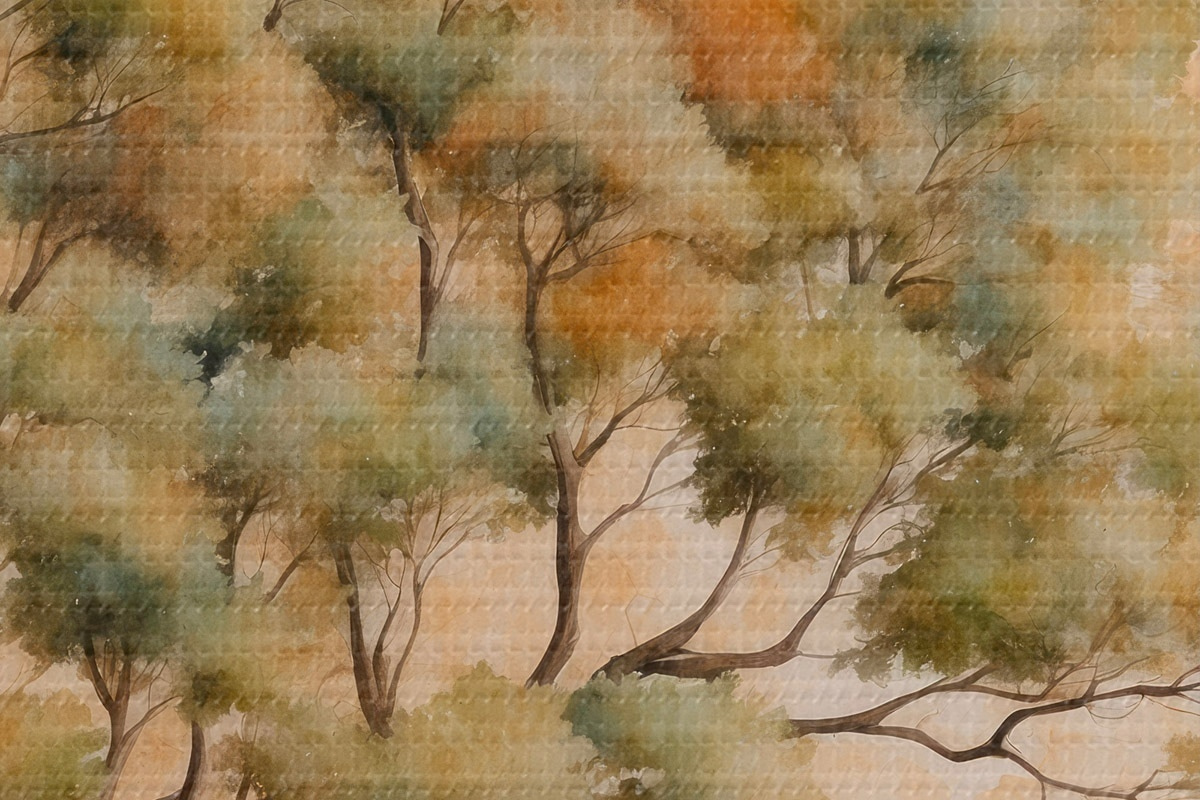 Attēls Koks uz oranžā un baltā fona akvareļglezniecības stilā Nr r42514