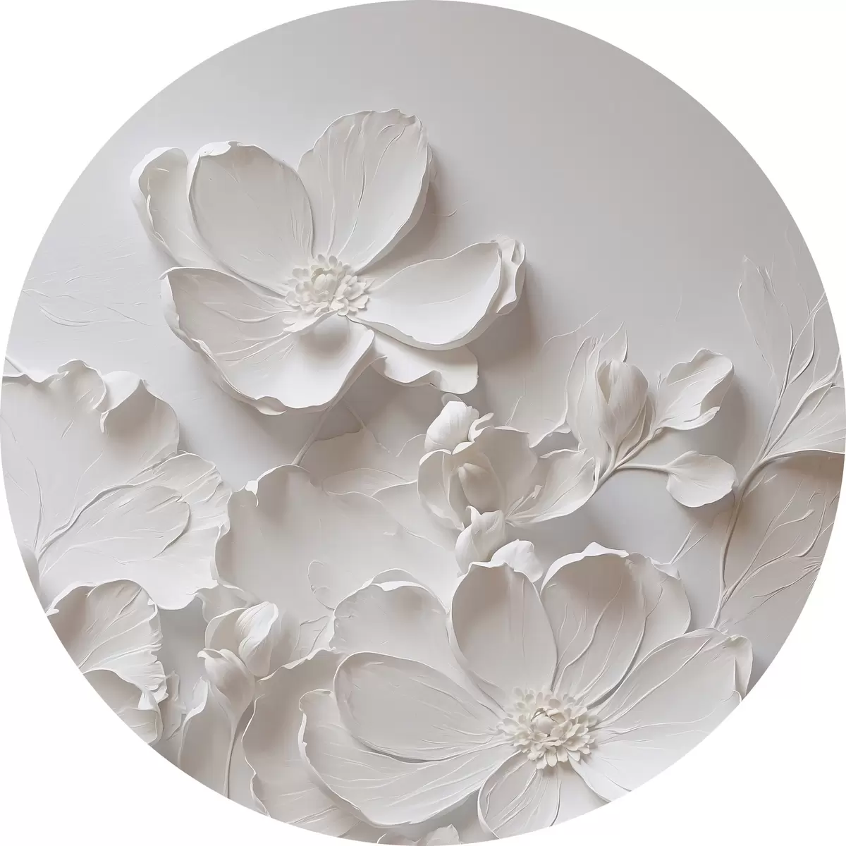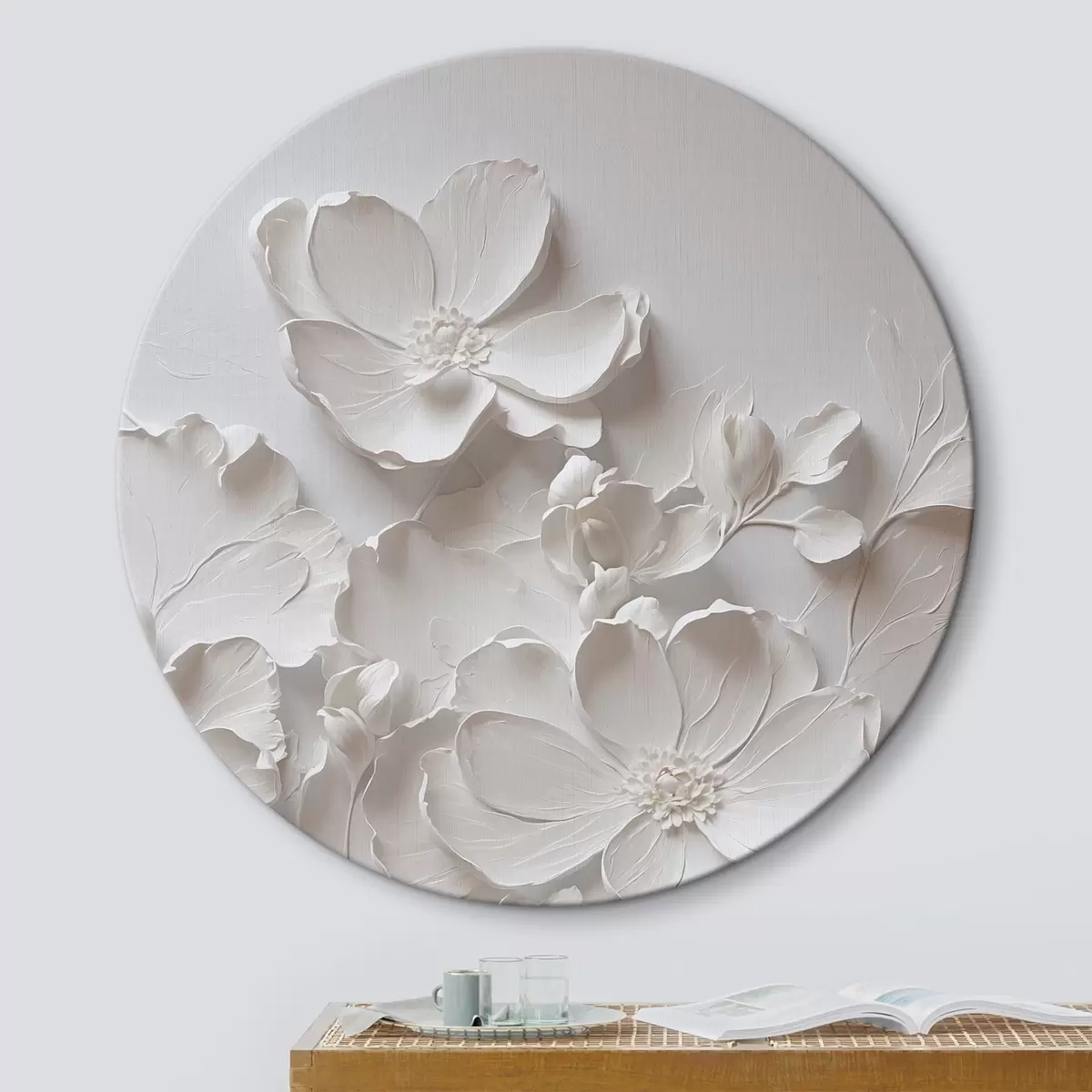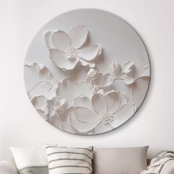 Apaļas gleznas Balti ziedi uz balta fona eļļas gleznošanas stilā r42516