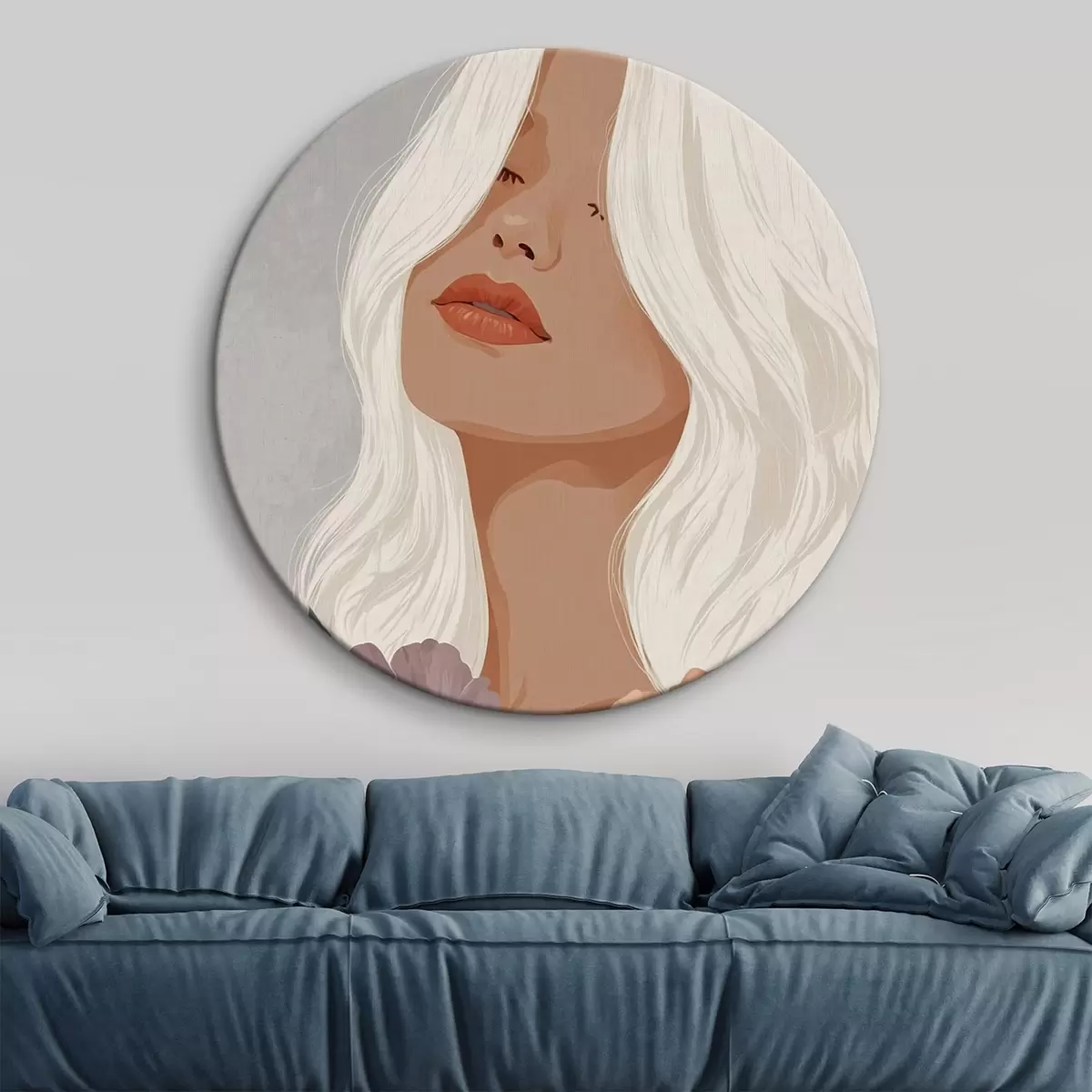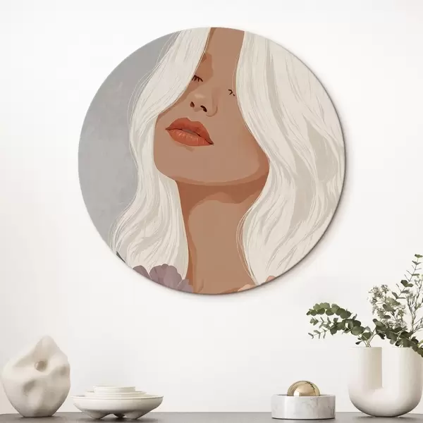 Apaļas gleznas Meitene uz pelēka fona vektoru grafikā r42521