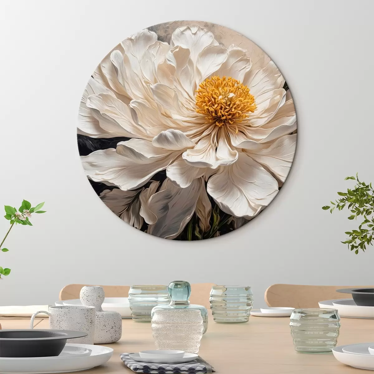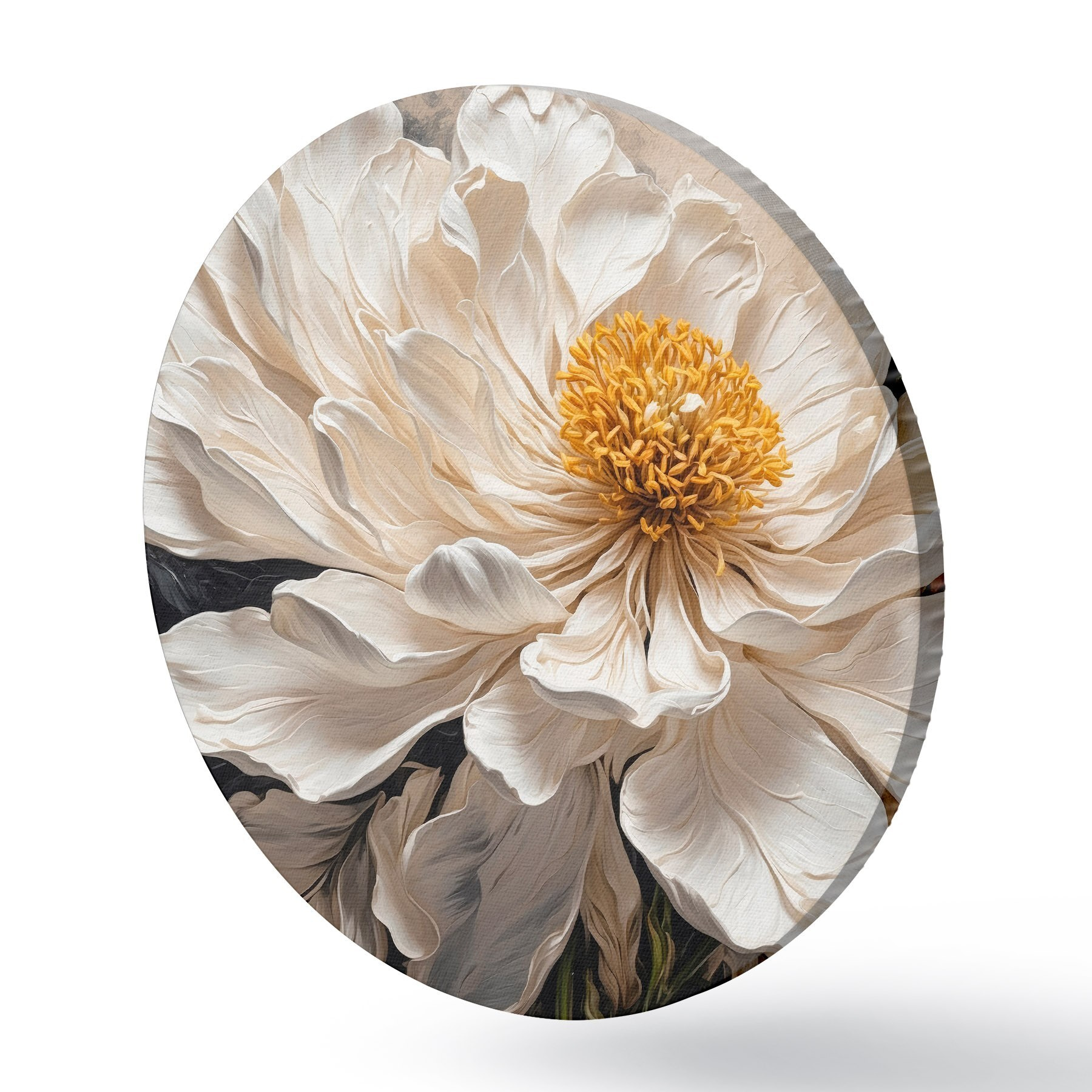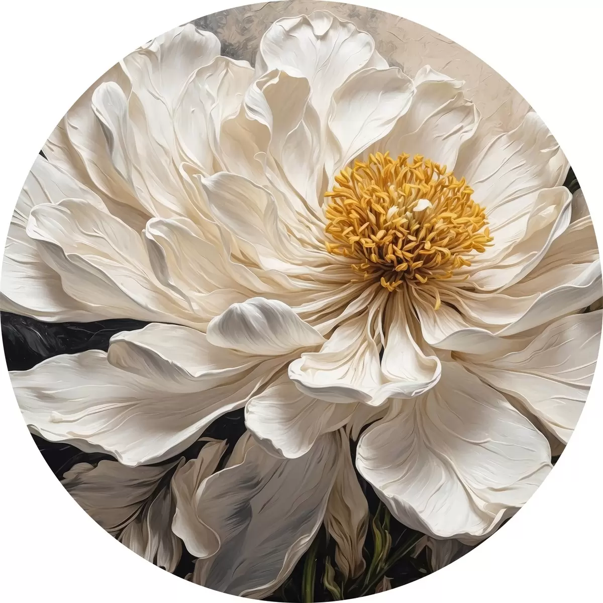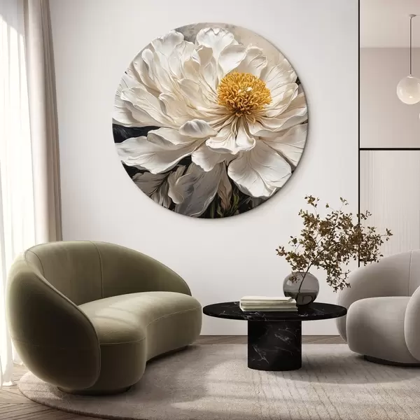 Apaļas gleznas Balts zieds uz melna un bēša fona r42522