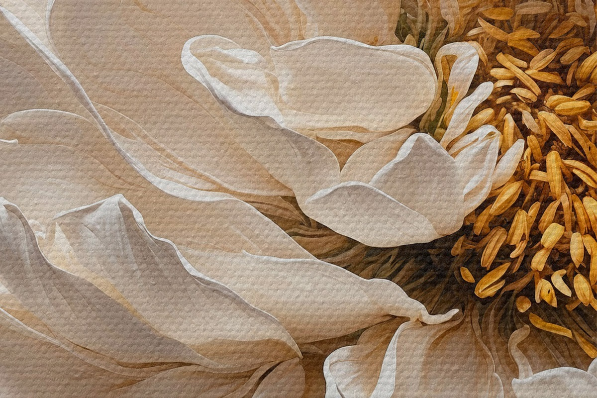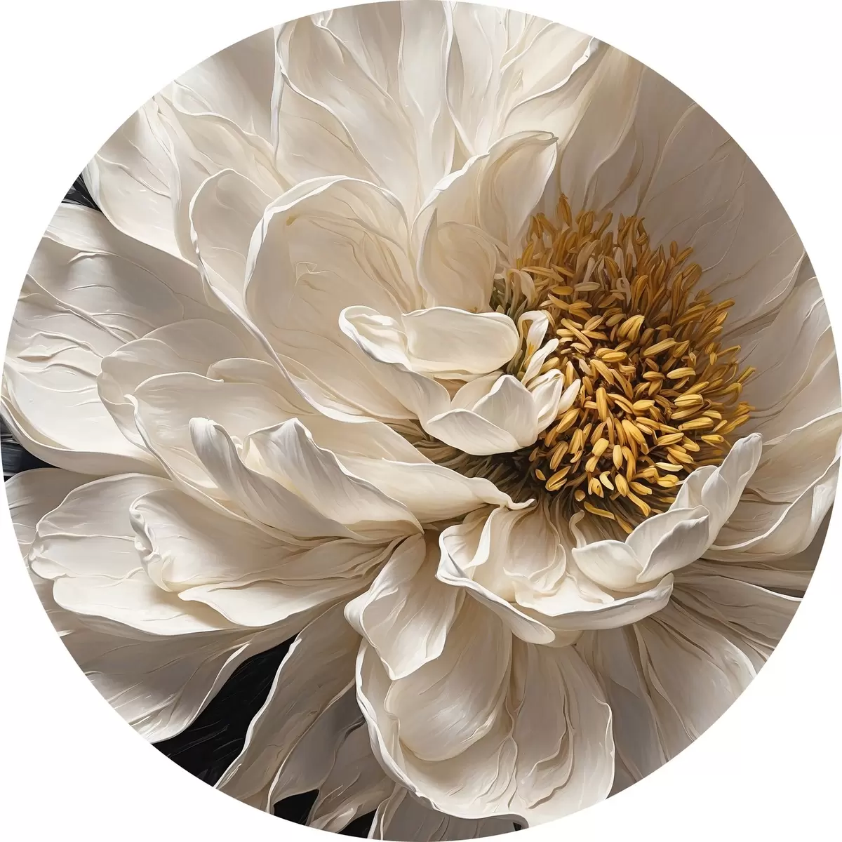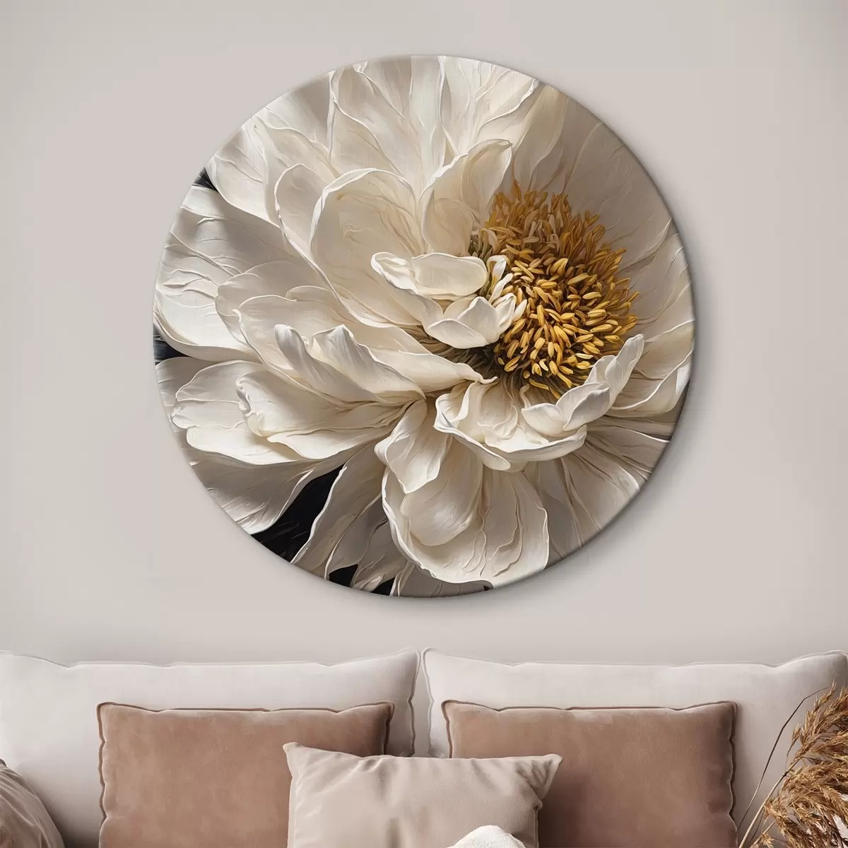Apaļas gleznas Balts zieds uz zili bēša fona r42523