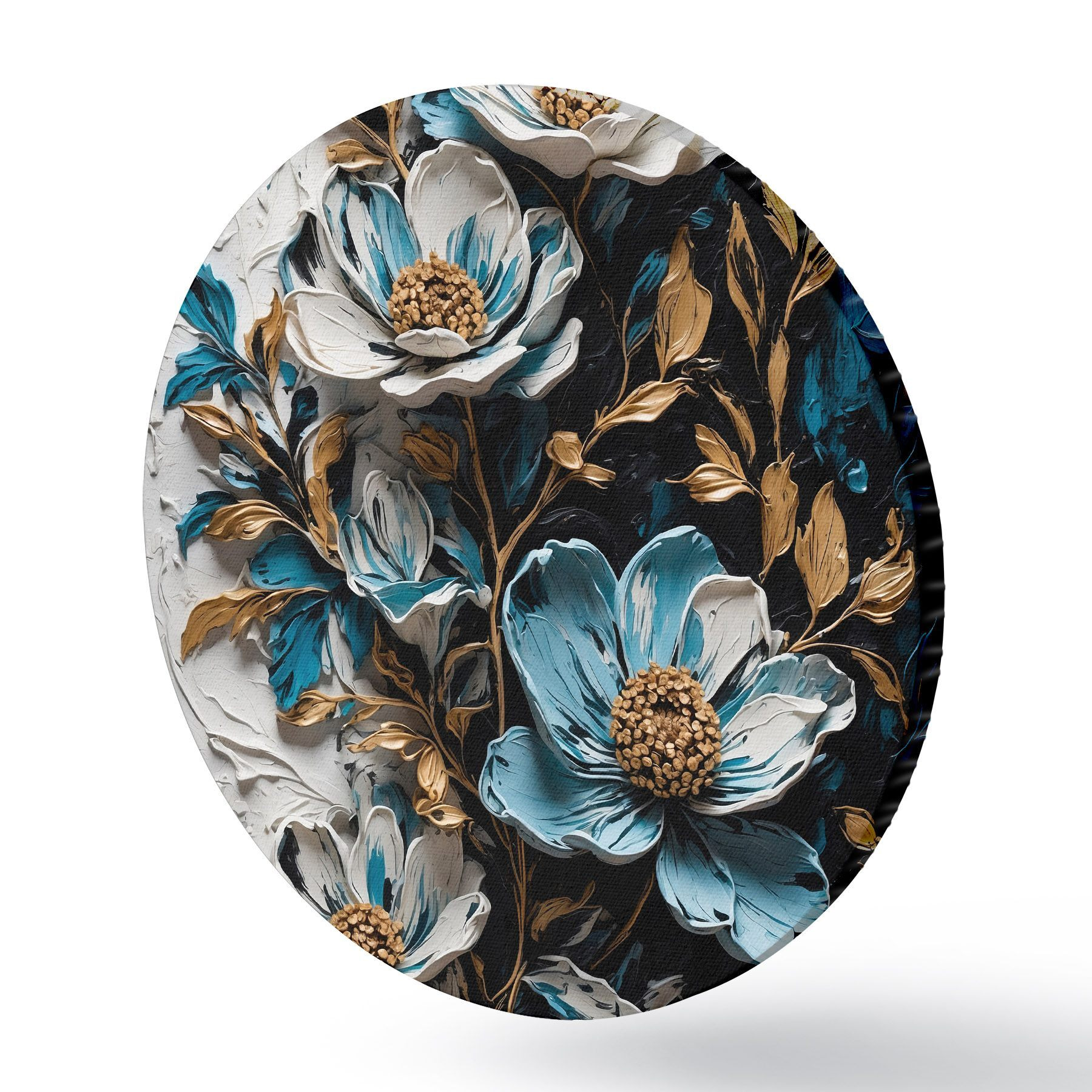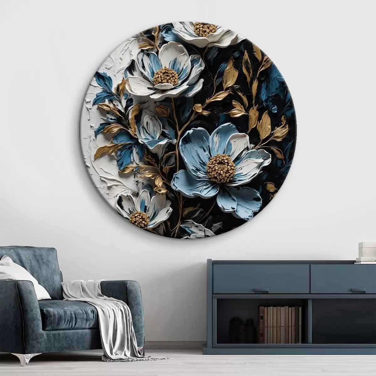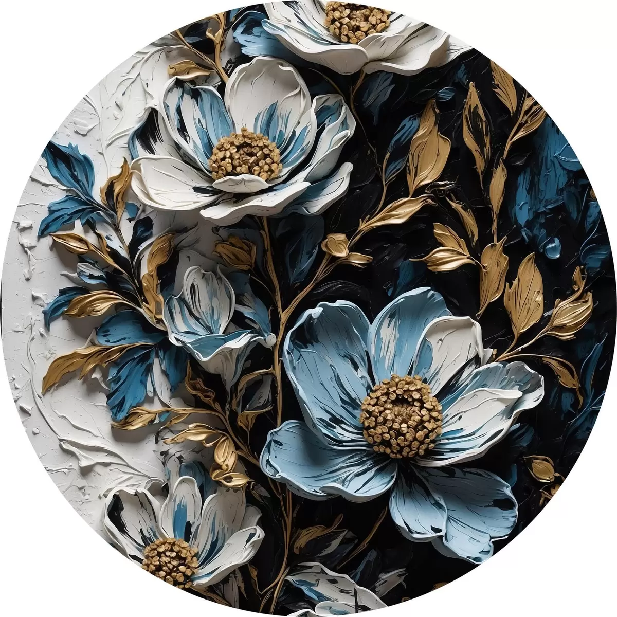 Apaļas gleznas Ziedi un stublāji uz melnā un baltā fona eļļas gleznošanas stilā r42532