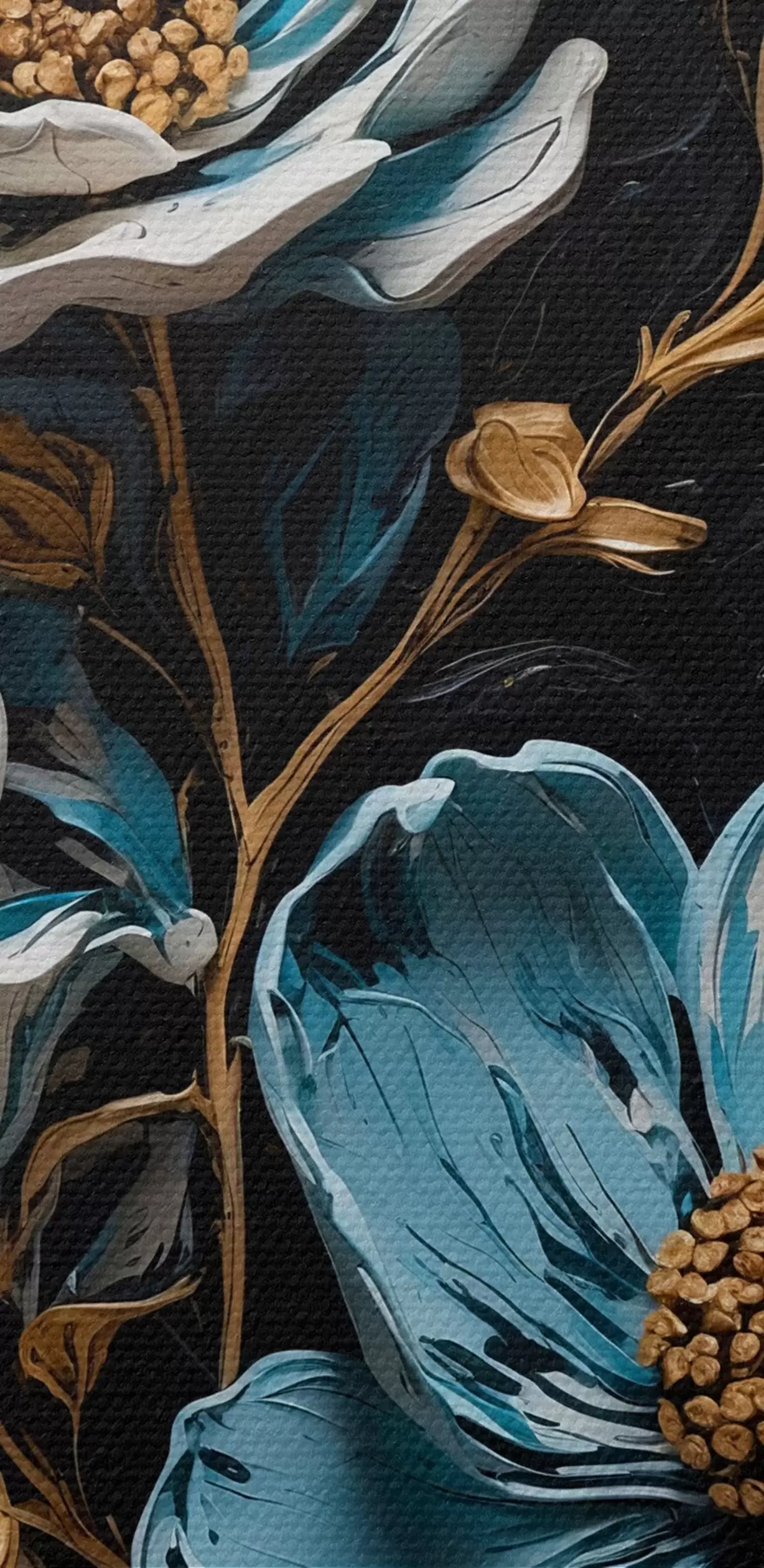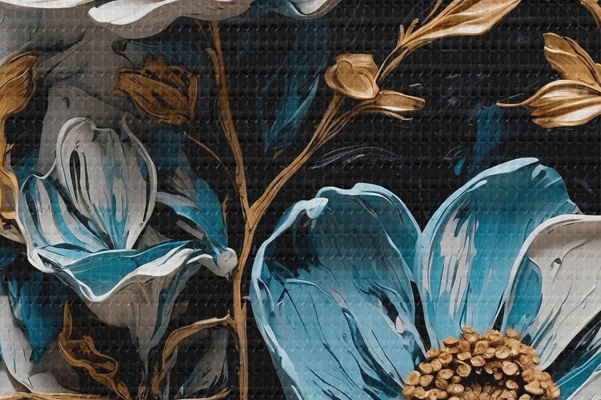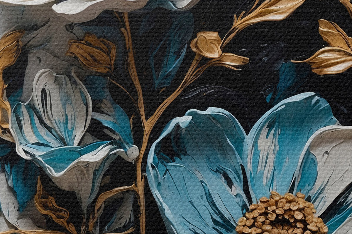 Attēls Ziedi un stublāji uz melnā un baltā fona eļļas gleznošanas stilā Nr r42532