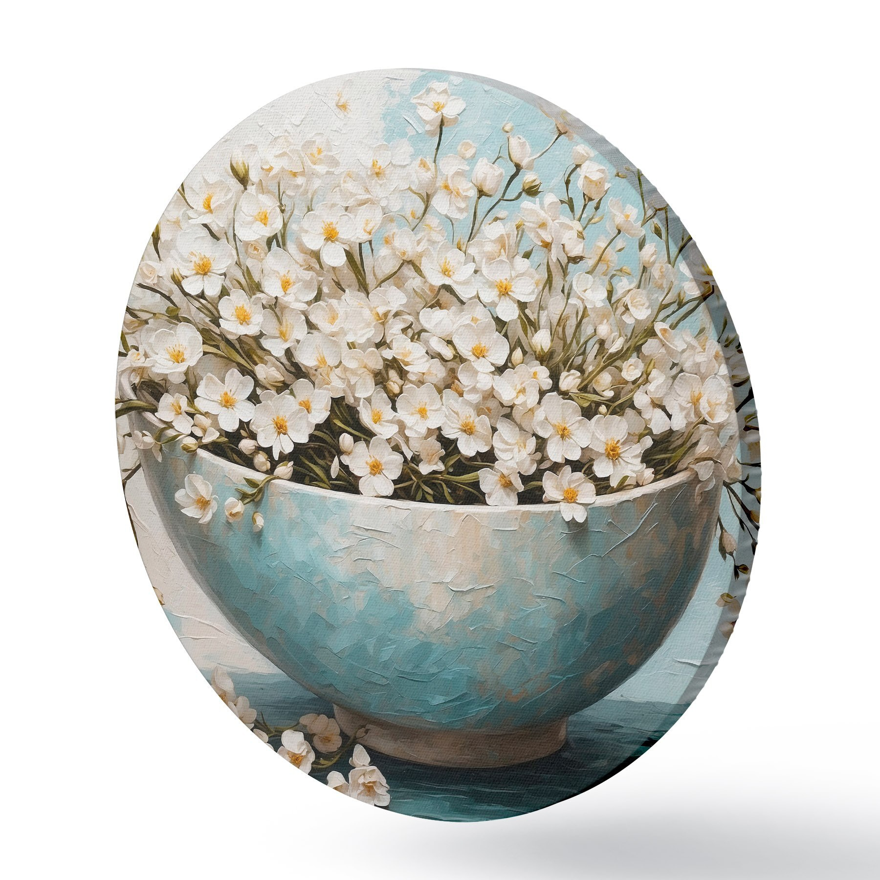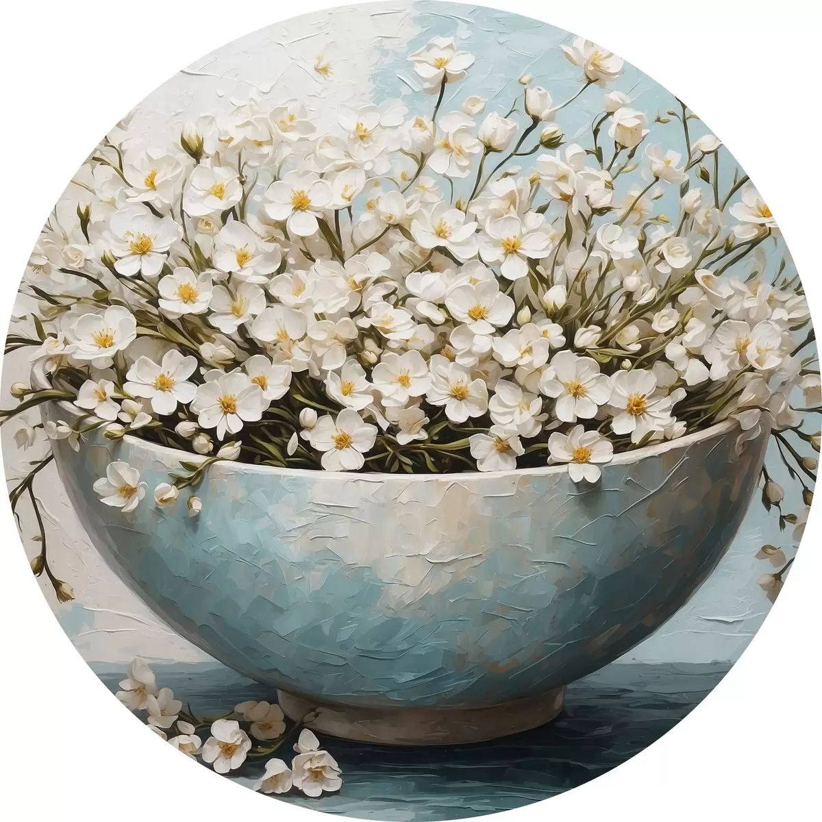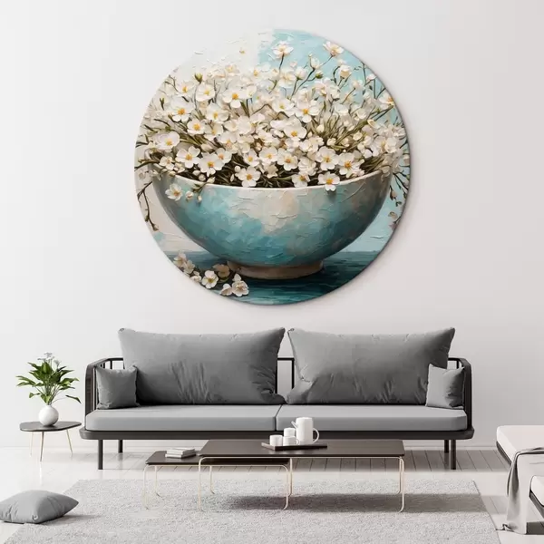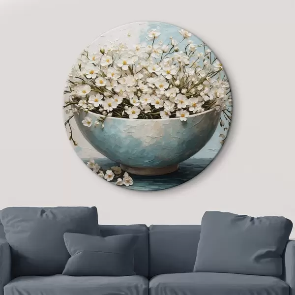 Apaļas gleznas Balti mazi ziedi podā r42533