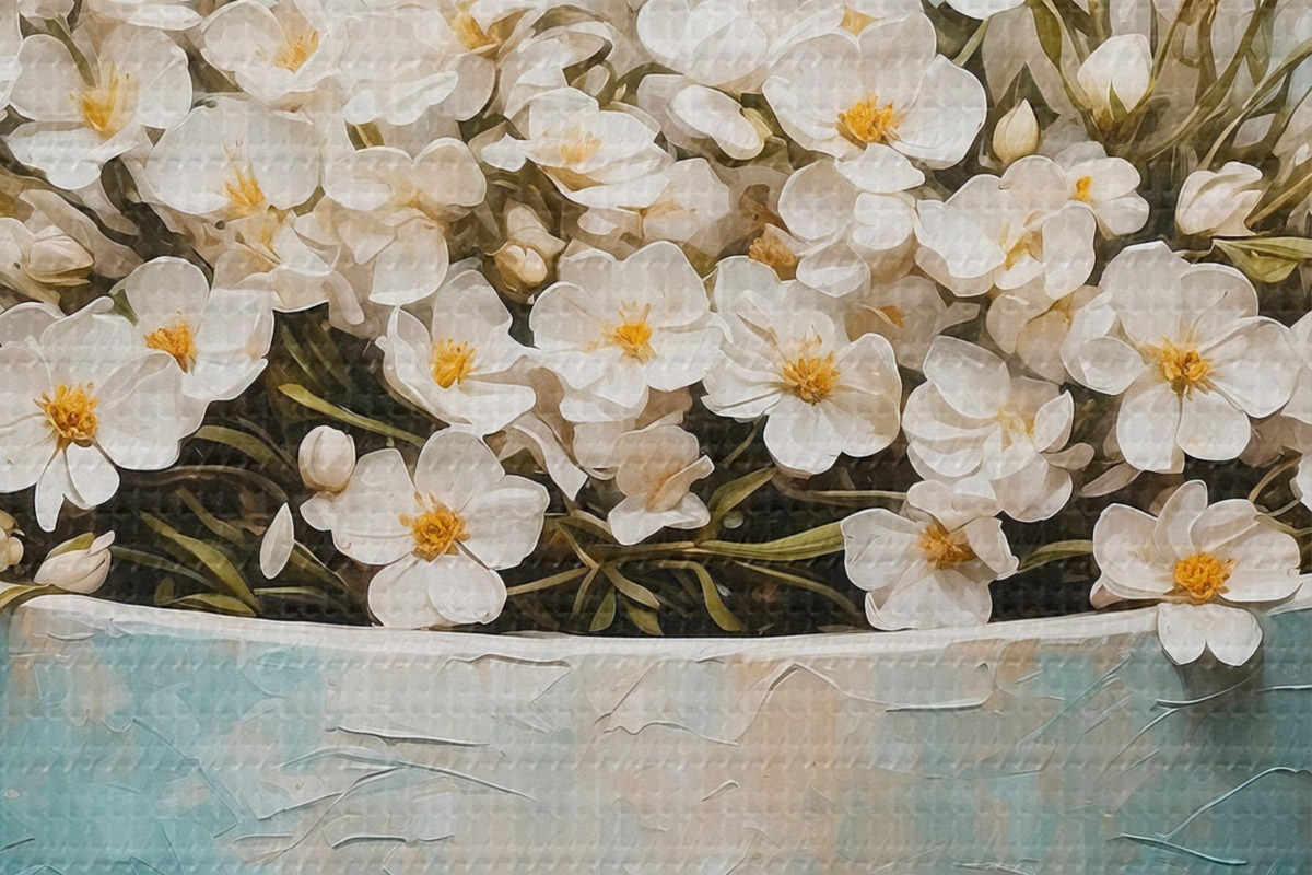 Attēls Balti mazi ziedi podā Nr r42533