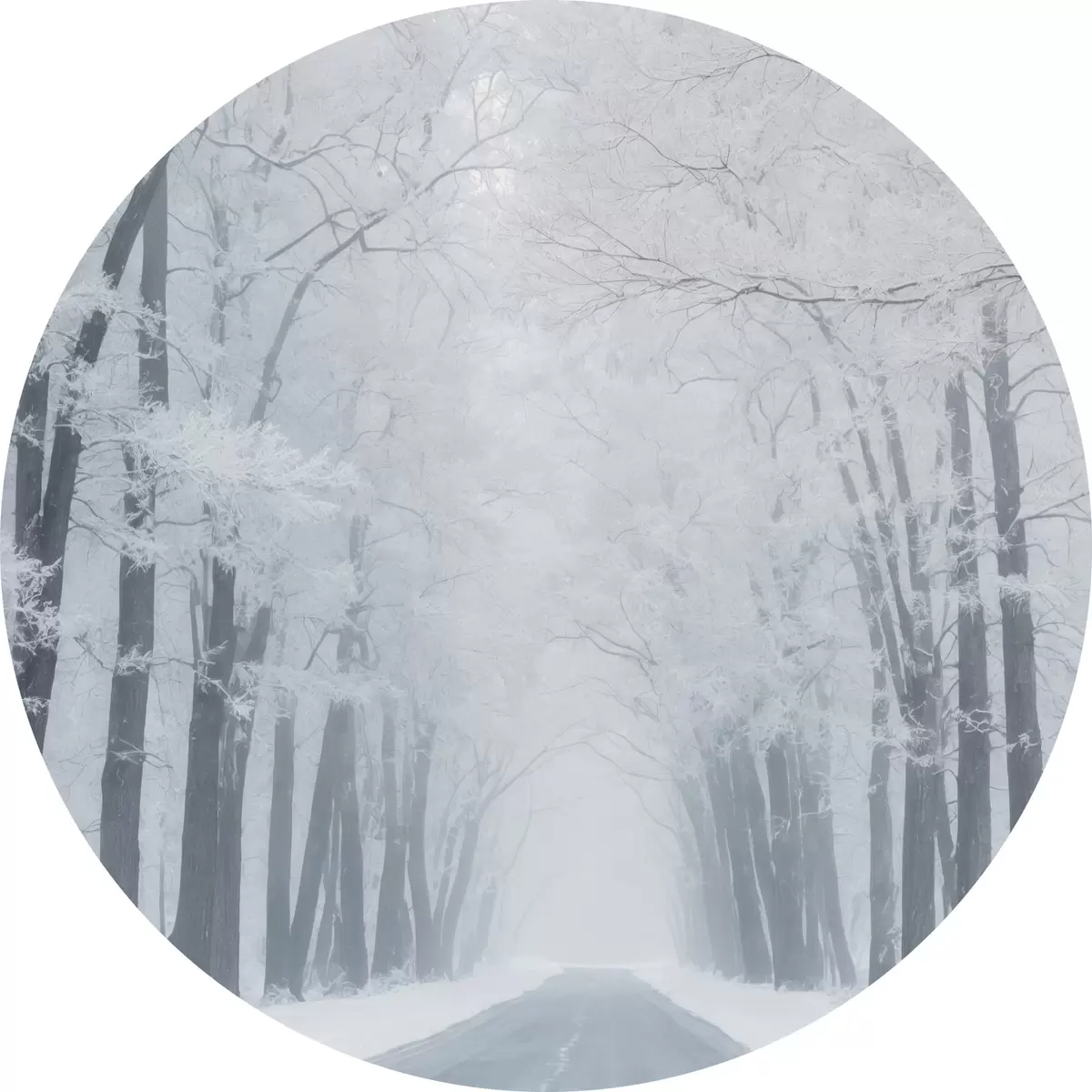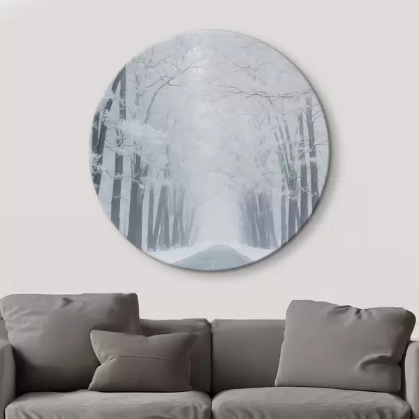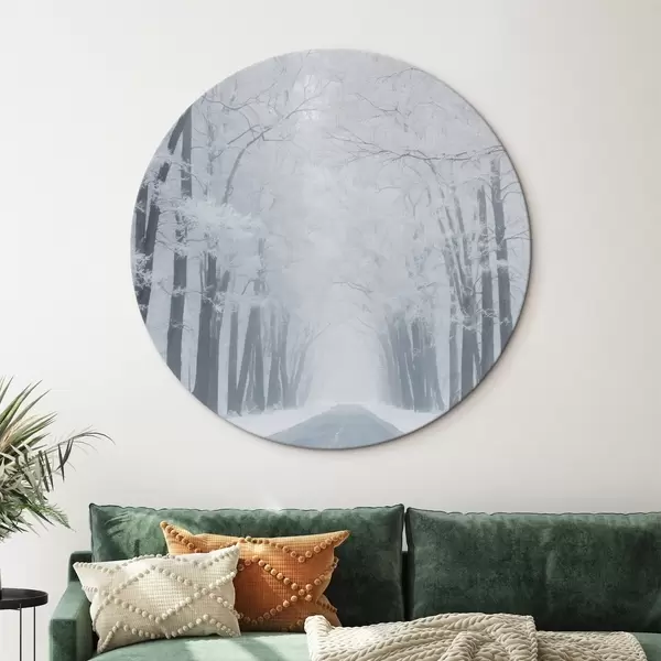 Apaļas gleznas Ceļš cauri mežam ziemā r42551