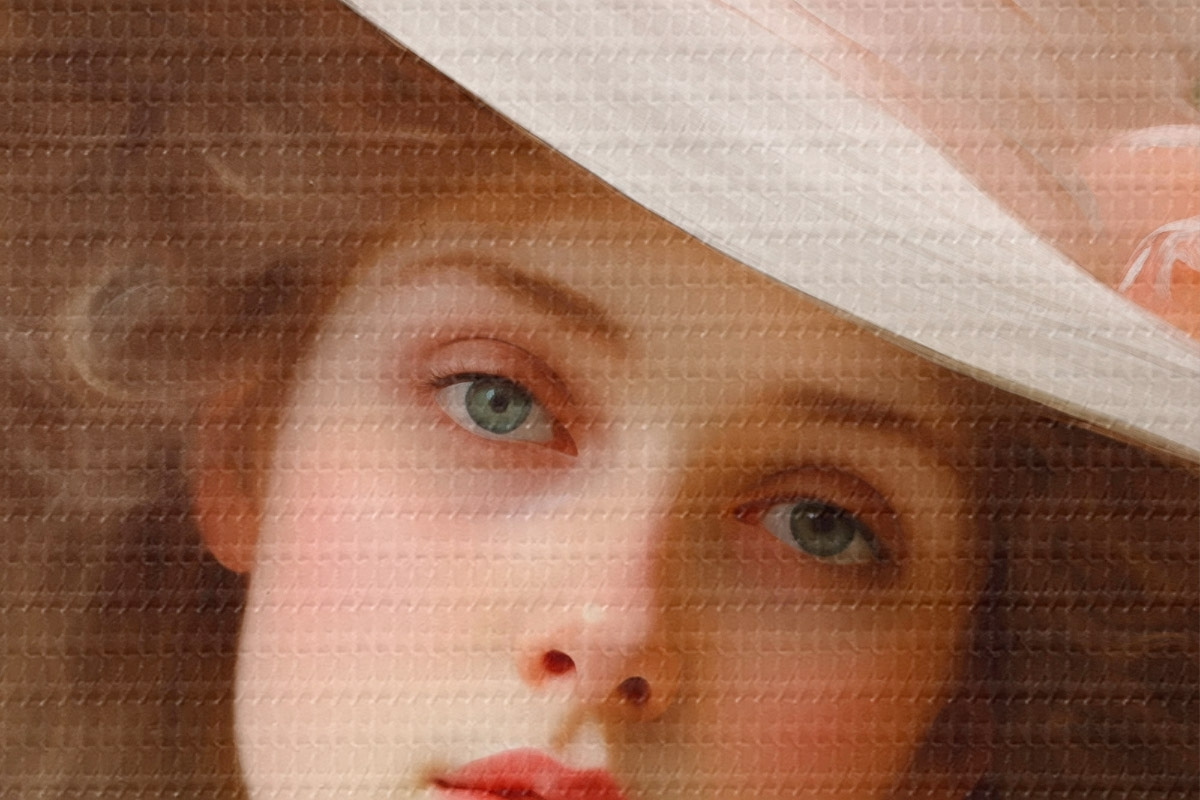 Smalkais diegu pinums uz šī audekla atgādina profesionālu mākslinieku audeklu virsmu.