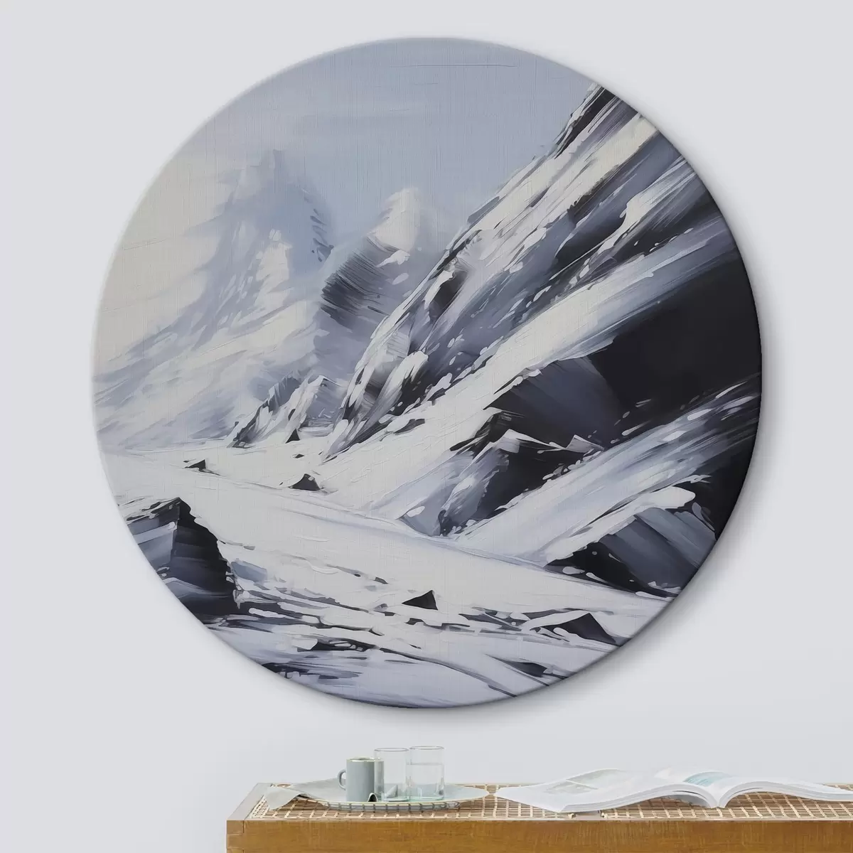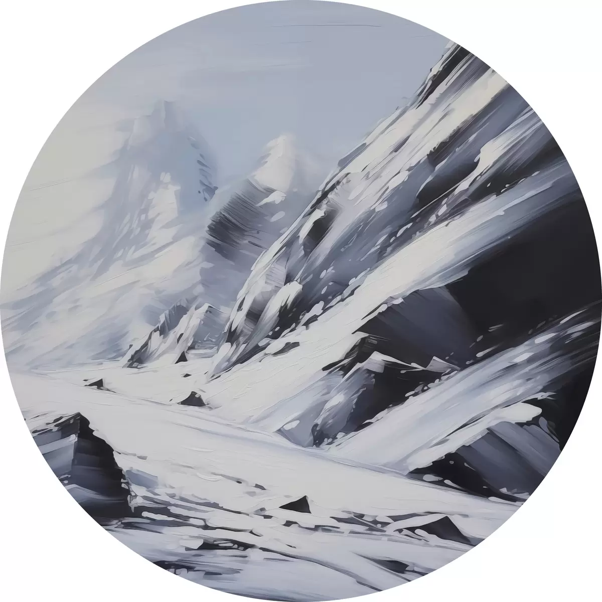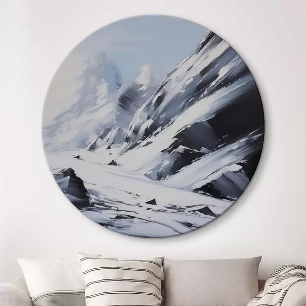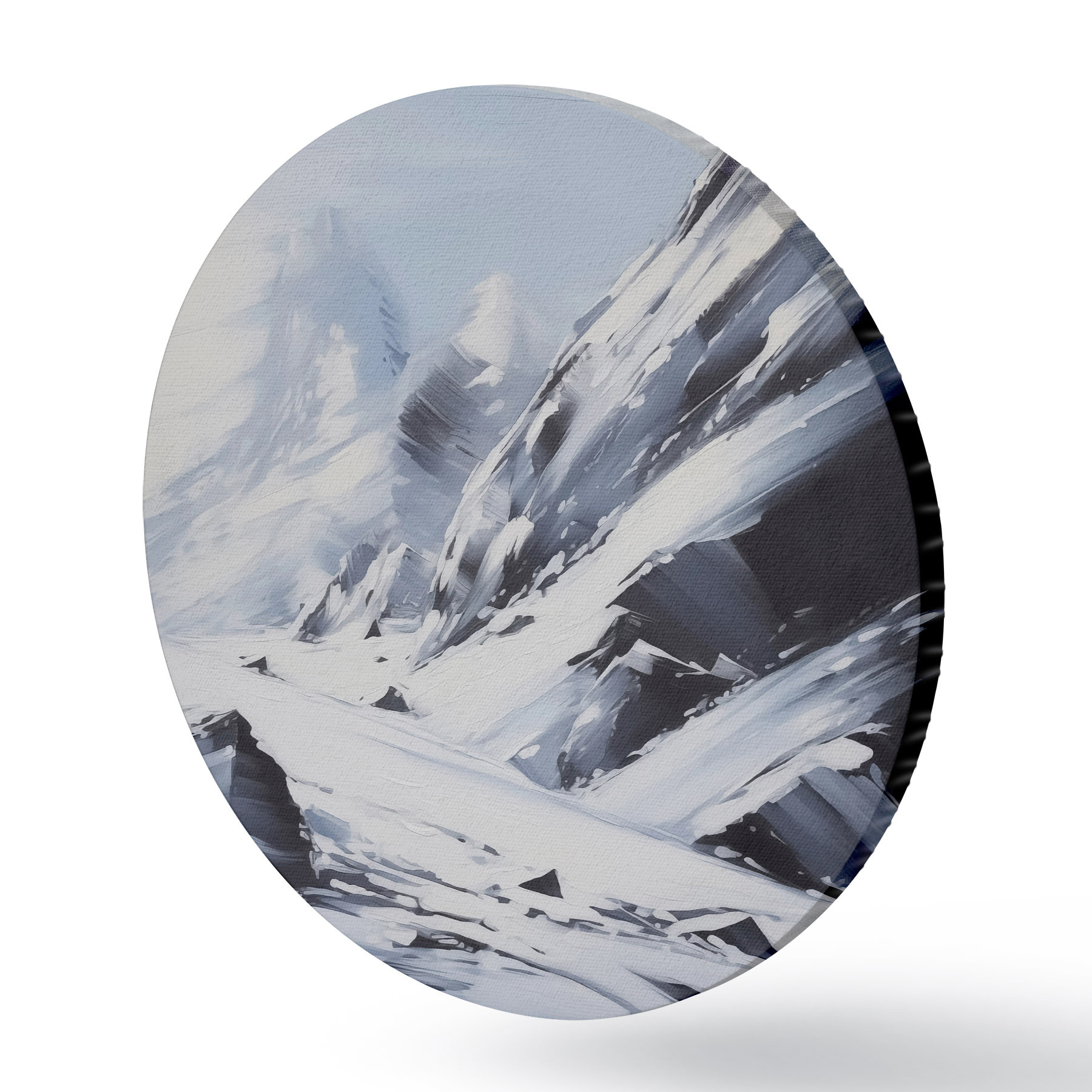 Apaļas gleznas Sniega klātas klintis imitē glezniecības otas triepienus r42585
