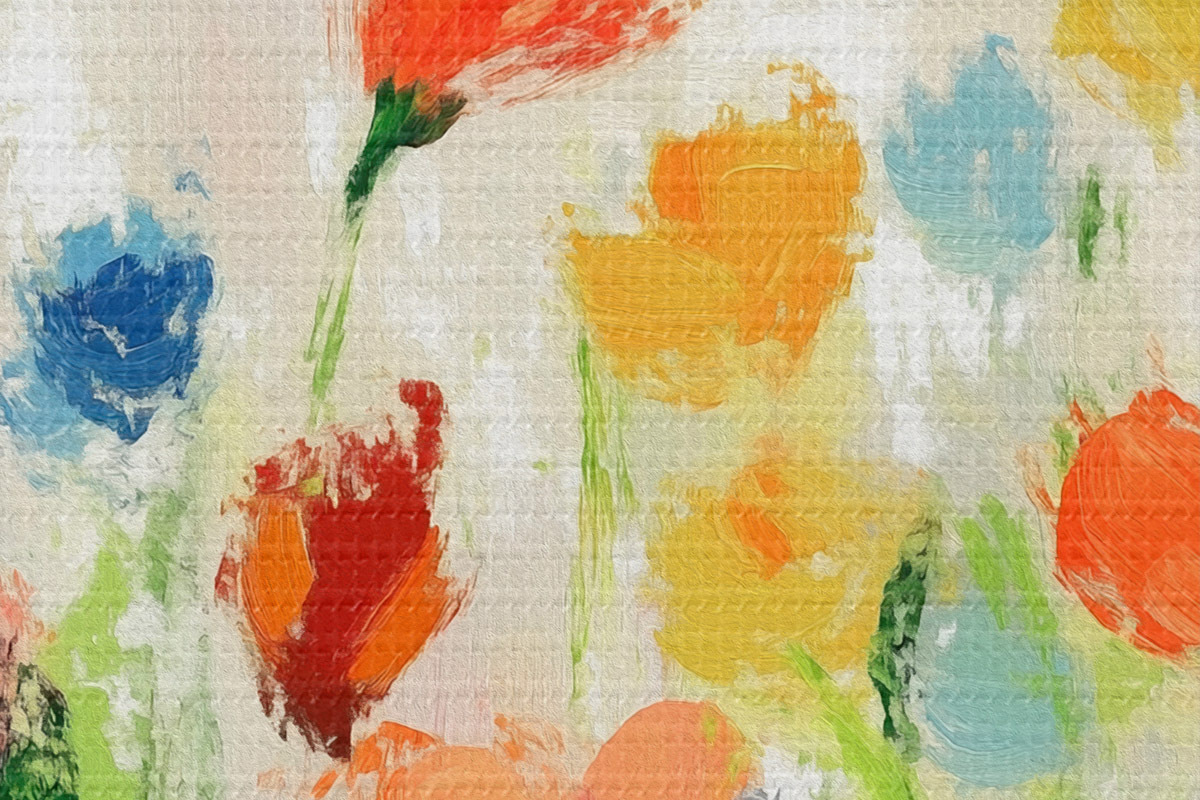 Smalkais diegu pinums uz šī audekla atgādina profesionālu mākslinieku audeklu virsmu.