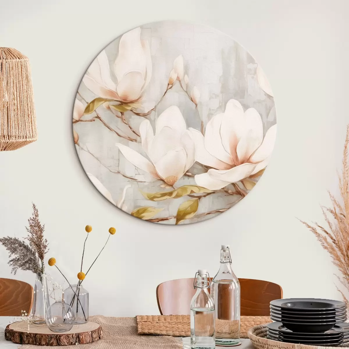 Apaļas gleznas Zariņš ar magnolijas ziedu tendenci r42632