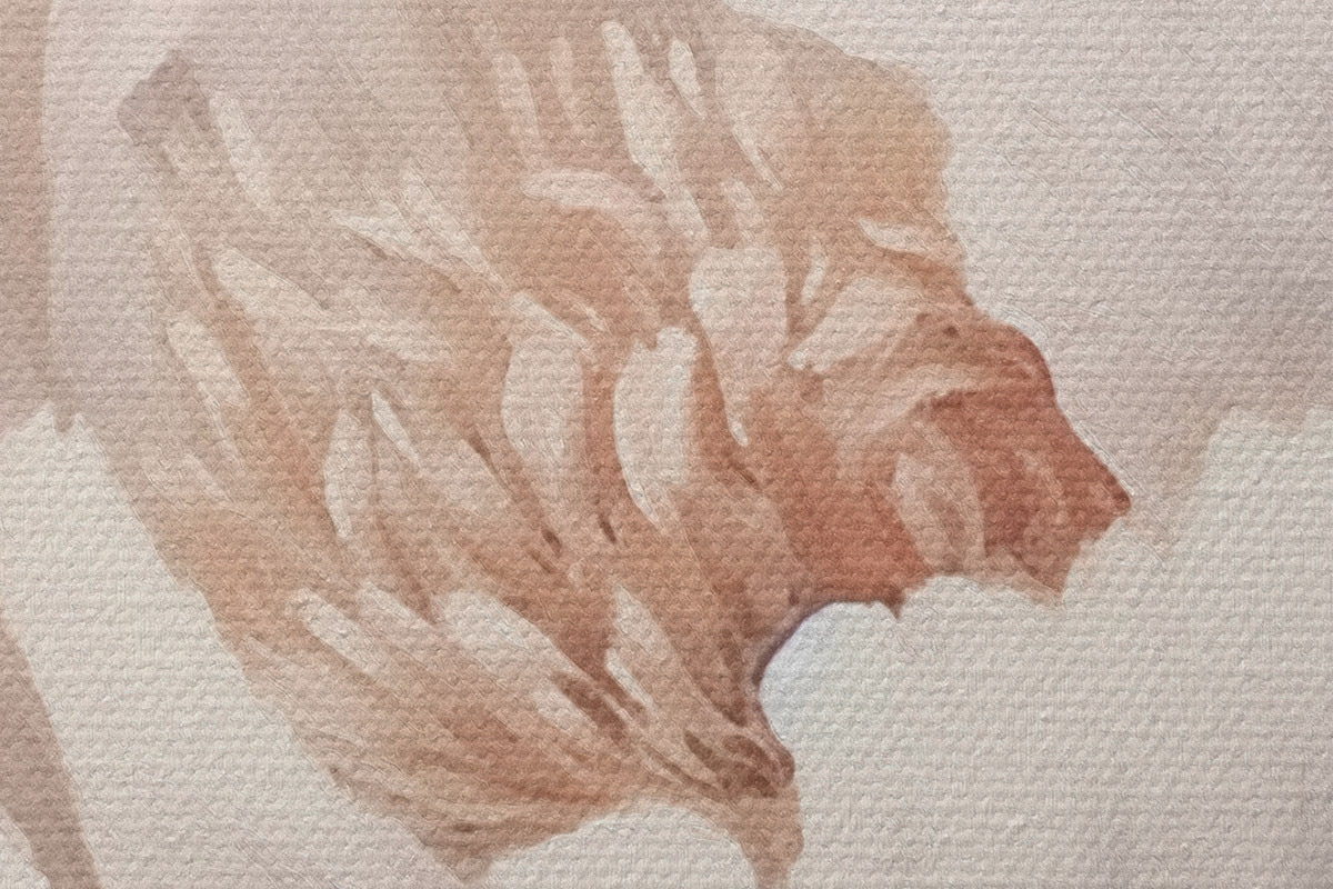 Smalkais diegu pinums uz šī audekla atgādina profesionālu mākslinieku audeklu virsmu.