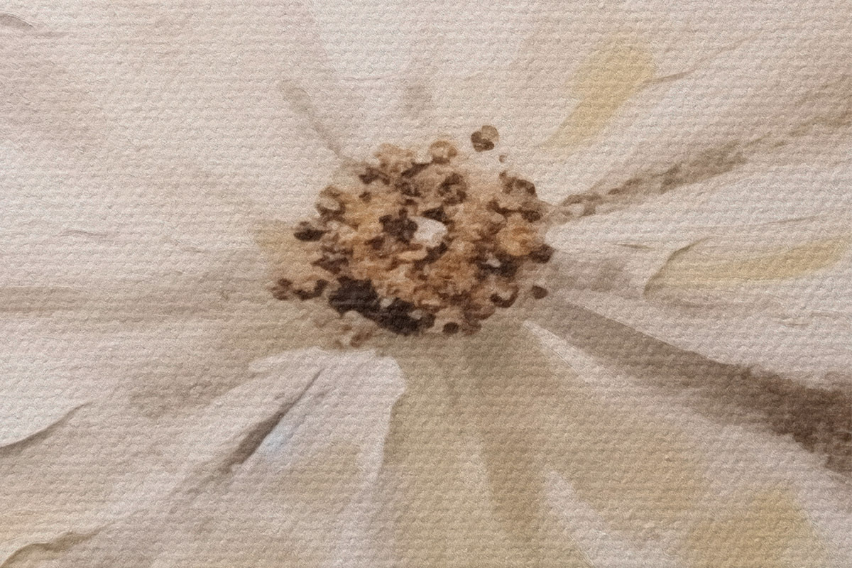 Smalkais diegu pinums uz šī audekla atgādina profesionālu mākslinieku audeklu virsmu.