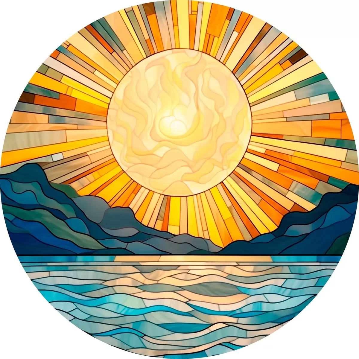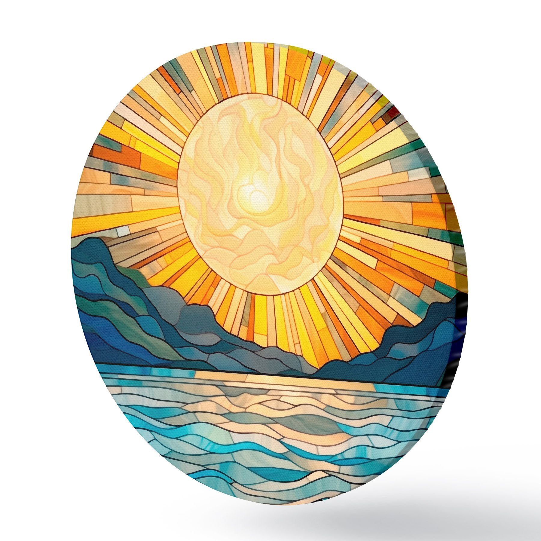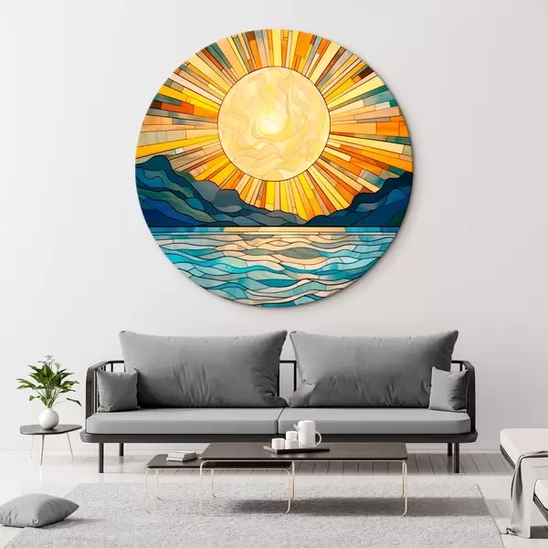 Apaļas gleznas Saule un viļņi vitrāžas stilā r42654