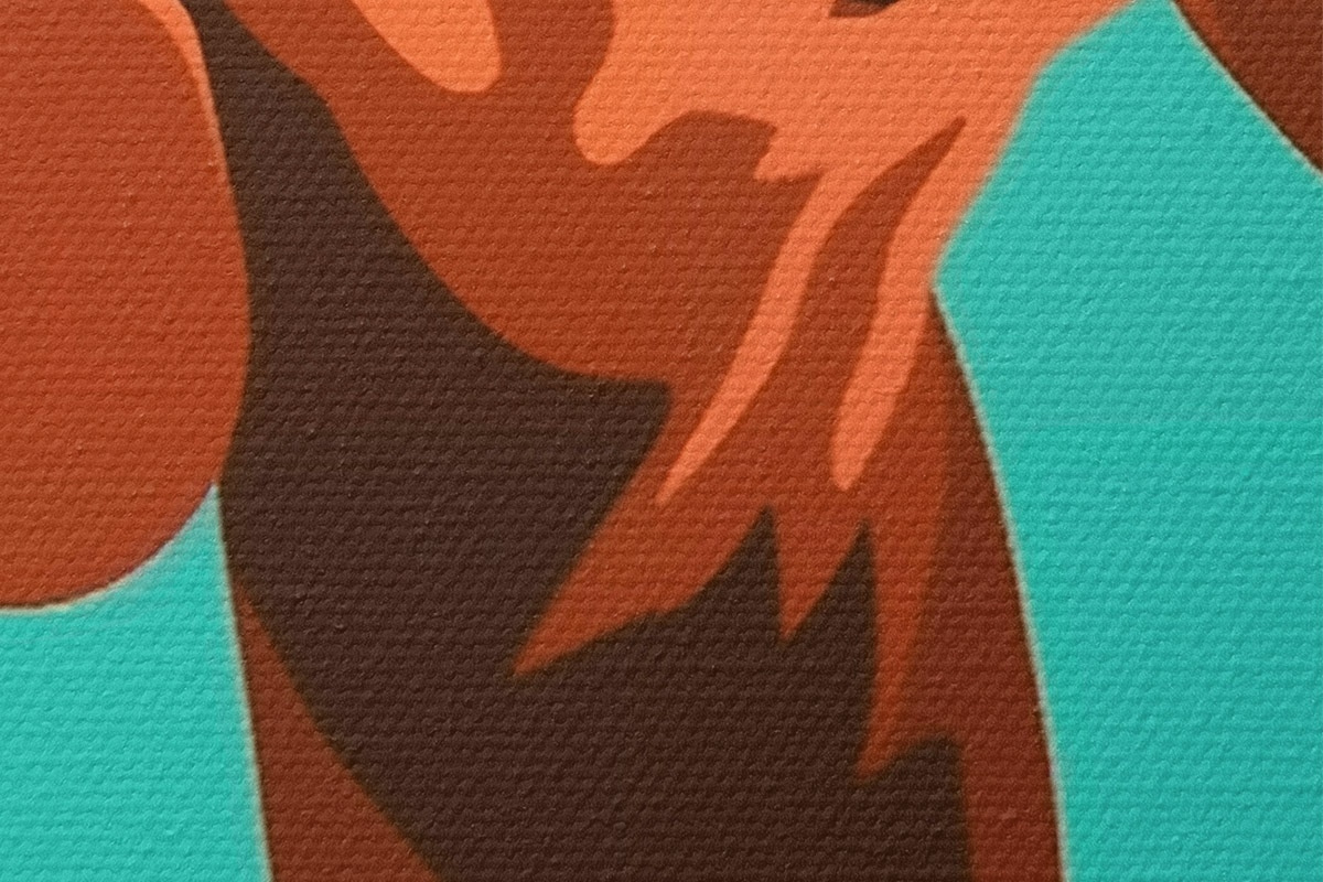 Smalkais diegu pinums uz šī audekla atgādina profesionālu mākslinieku audeklu virsmu.