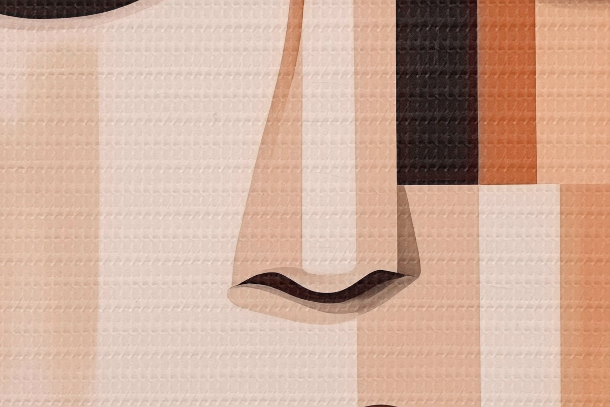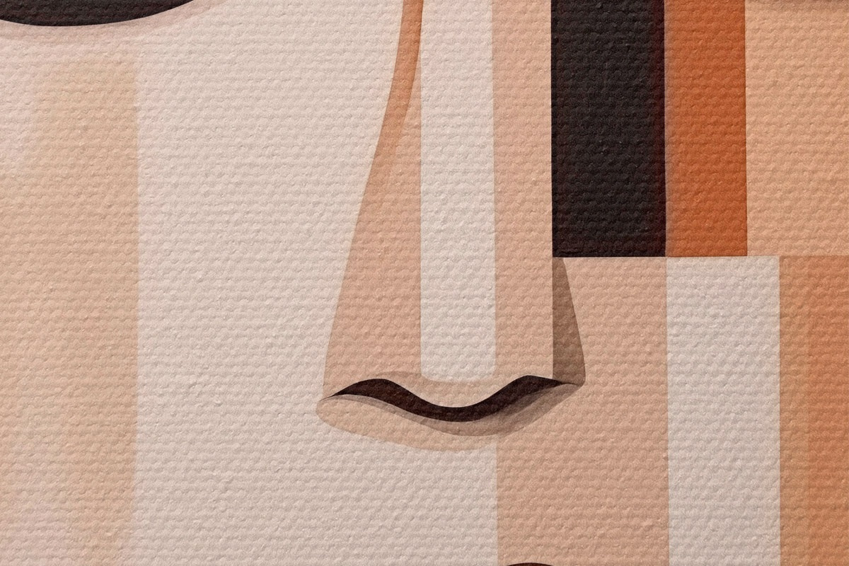 Smalkais diegu pinums uz šī audekla atgādina profesionālu mākslinieku audeklu virsmu.