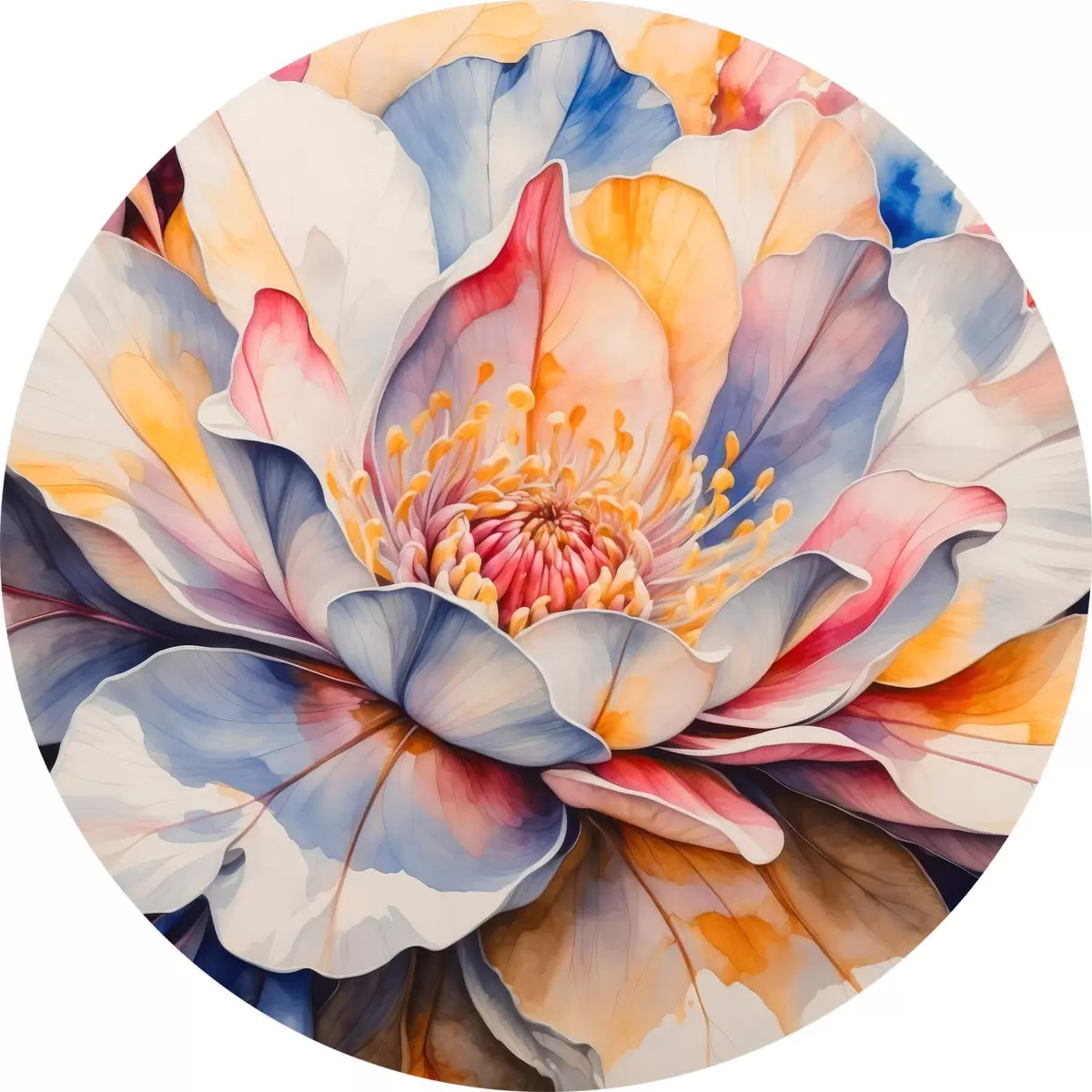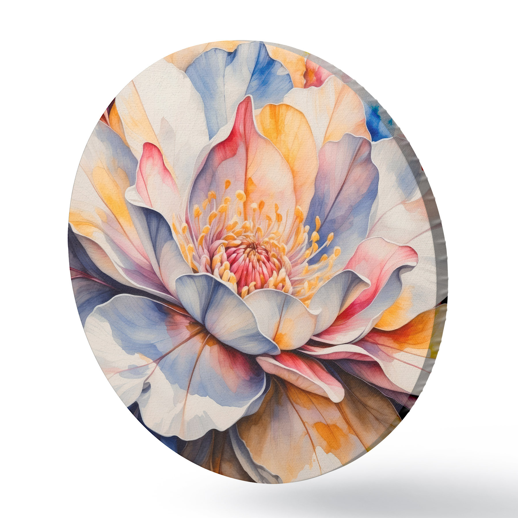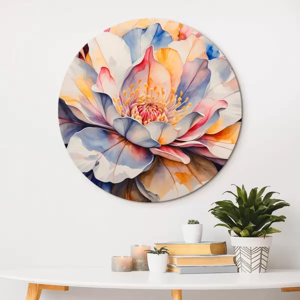 Apaļas gleznas Daudzkrāsains zieds ar akvareļa imitāciju r42706