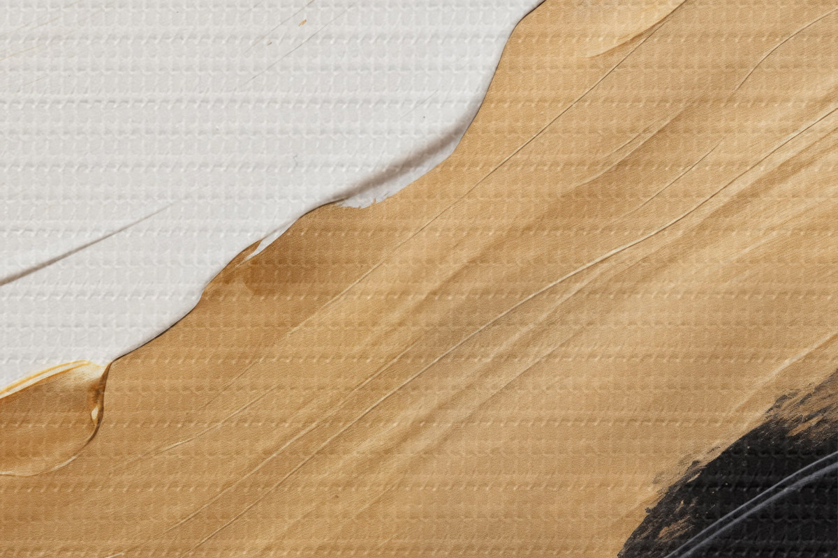 Attēls Abstrakta kompozīcija ar drosmīgiem baltas, dzeltenas un melnas krāsas triepieniem Nr r42717