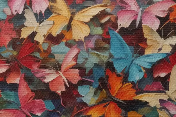 Attēls Spilgts tauriņu masīvs dažādās krāsās, kas imitē eļļas gleznošanu Nr r42728