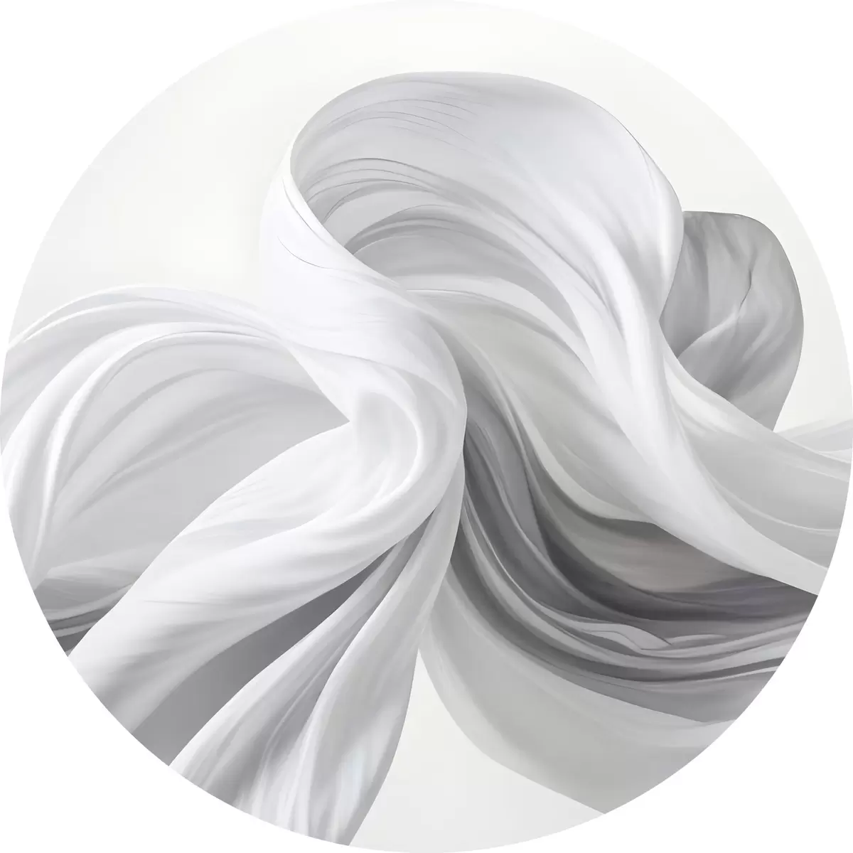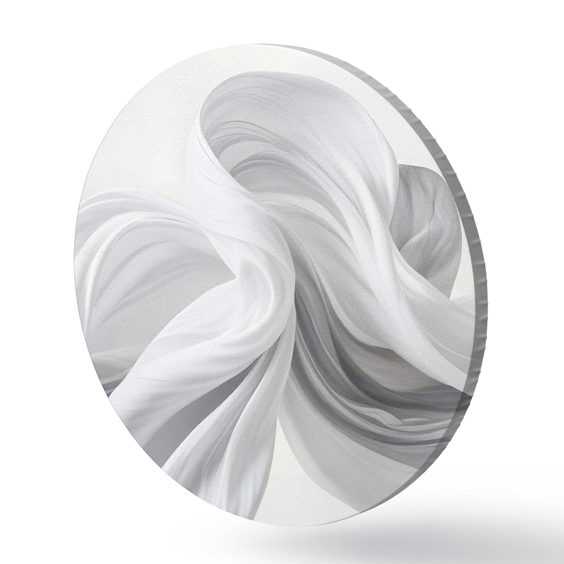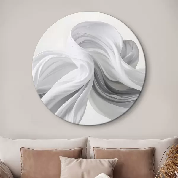 Apaļas gleznas Plūstošas baltas un pelēkas audumam līdzīgas formas, kas virpuļo un savijas uz gaiša fona r42732