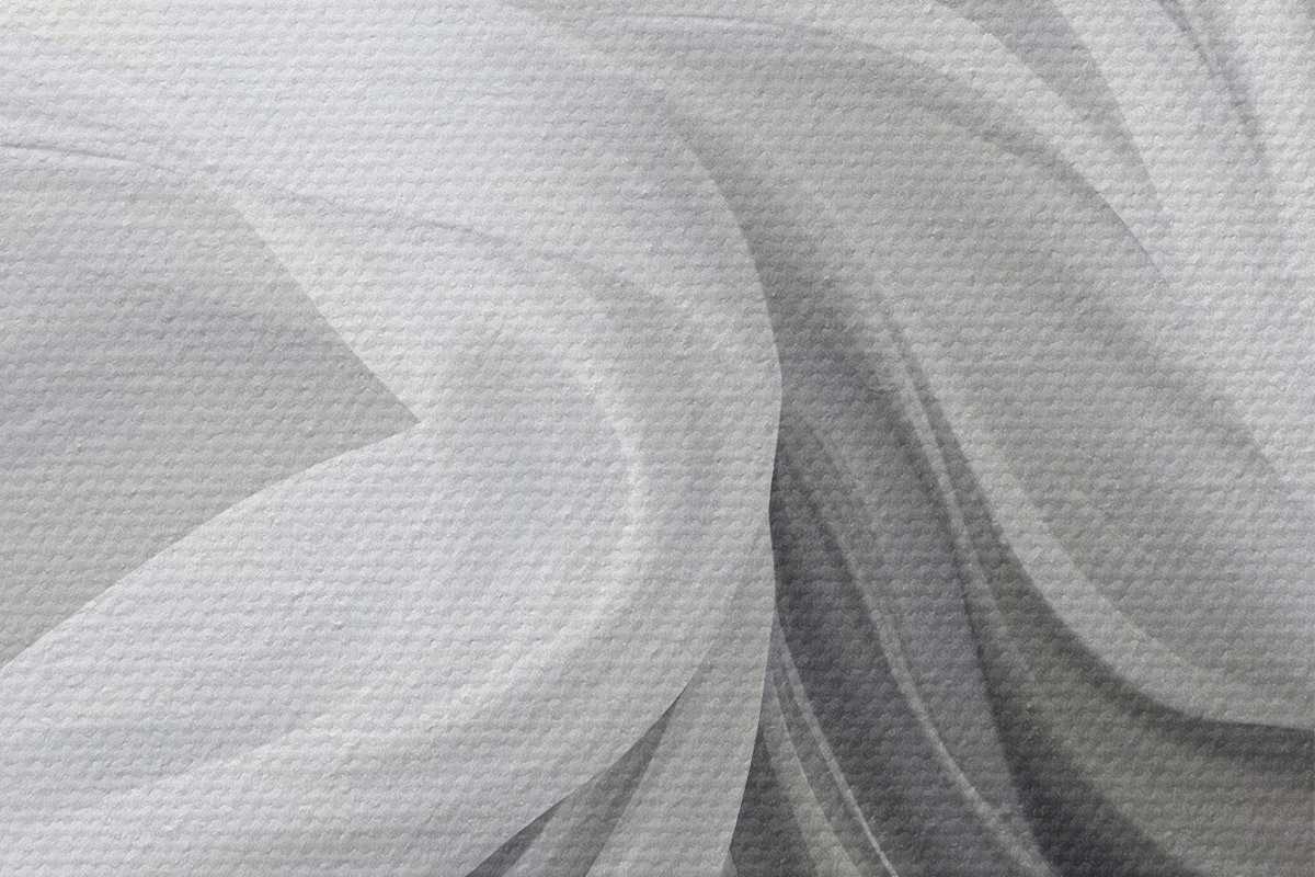 Attēls Plūstošas baltas un pelēkas audumam līdzīgas formas, kas virpuļo un savijas uz gaiša fona Nr r42732