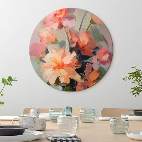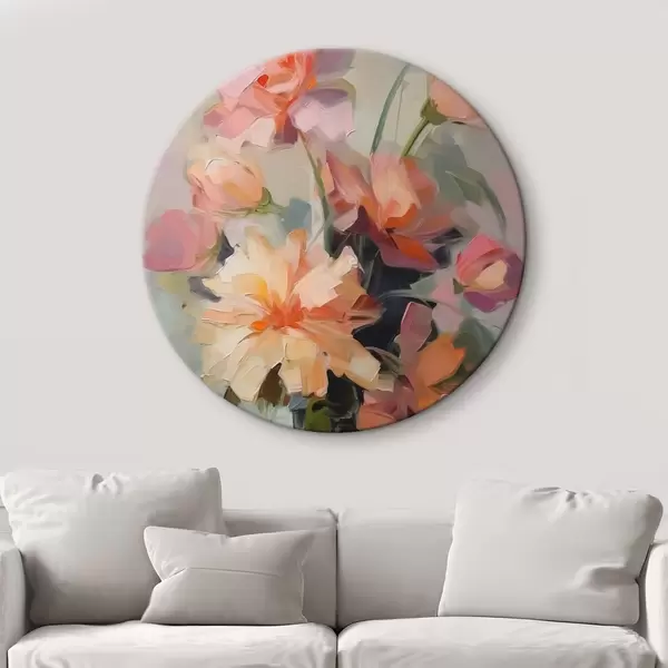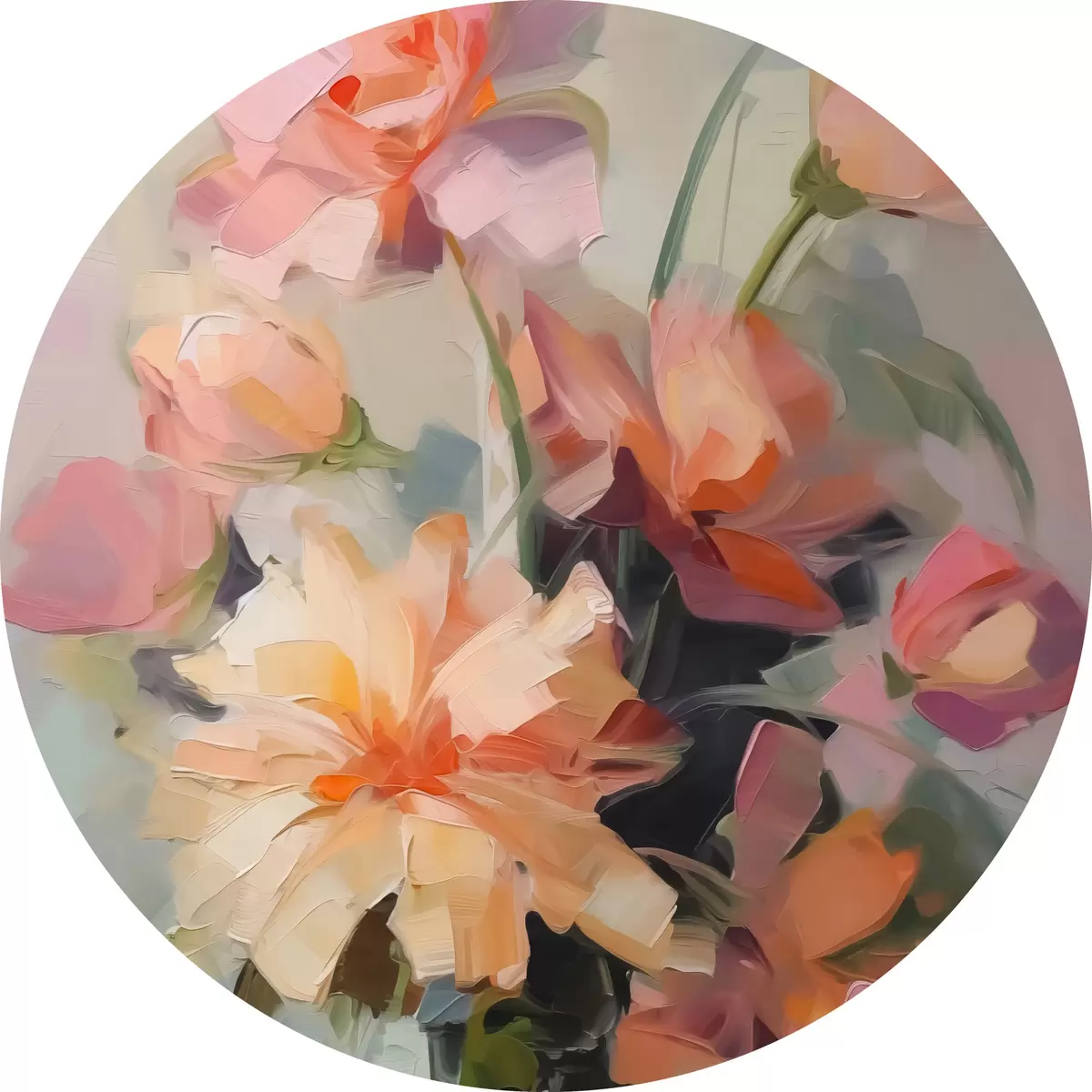 Apaļas gleznas Krizantēmas vāzē glezniecības triepienu imitācija r42745