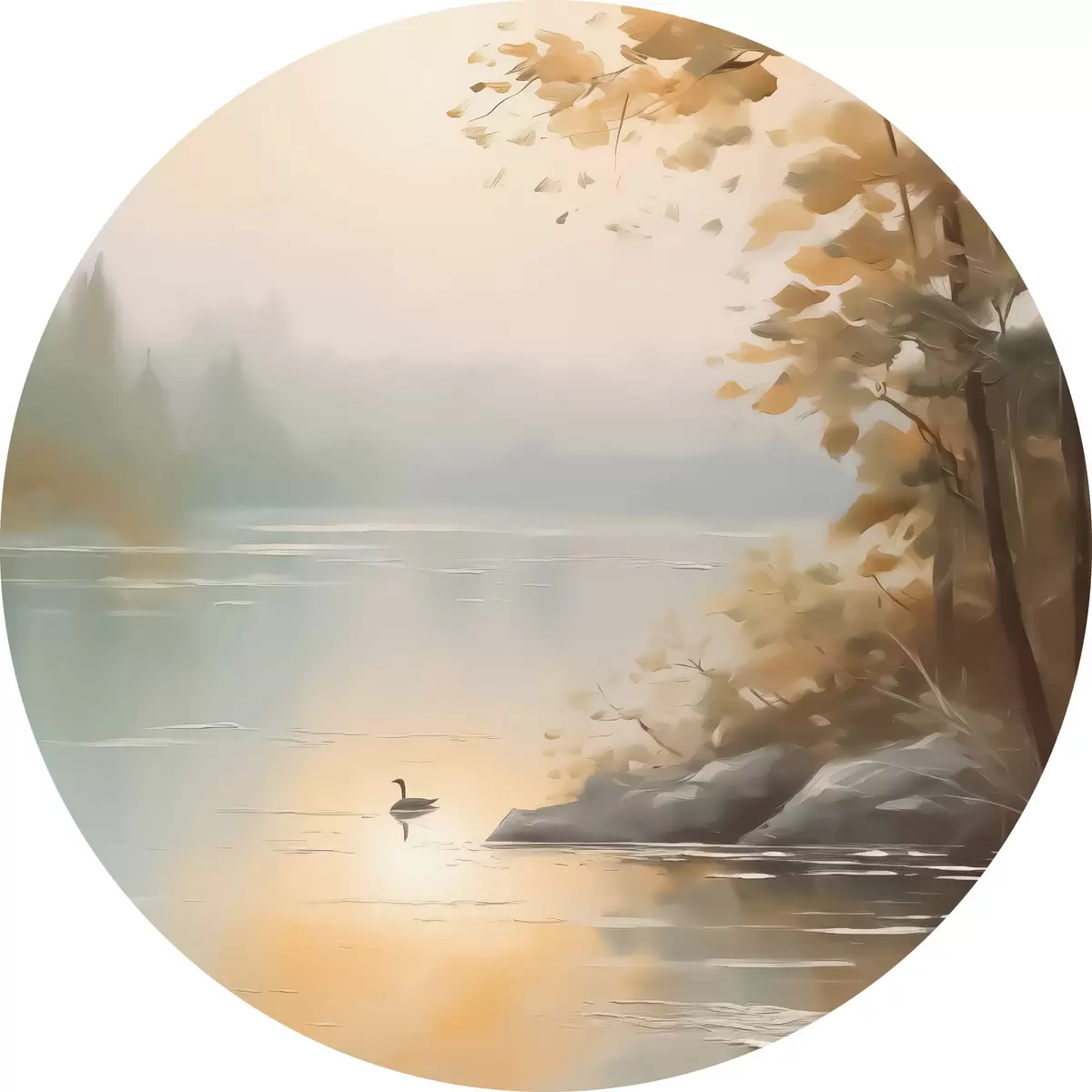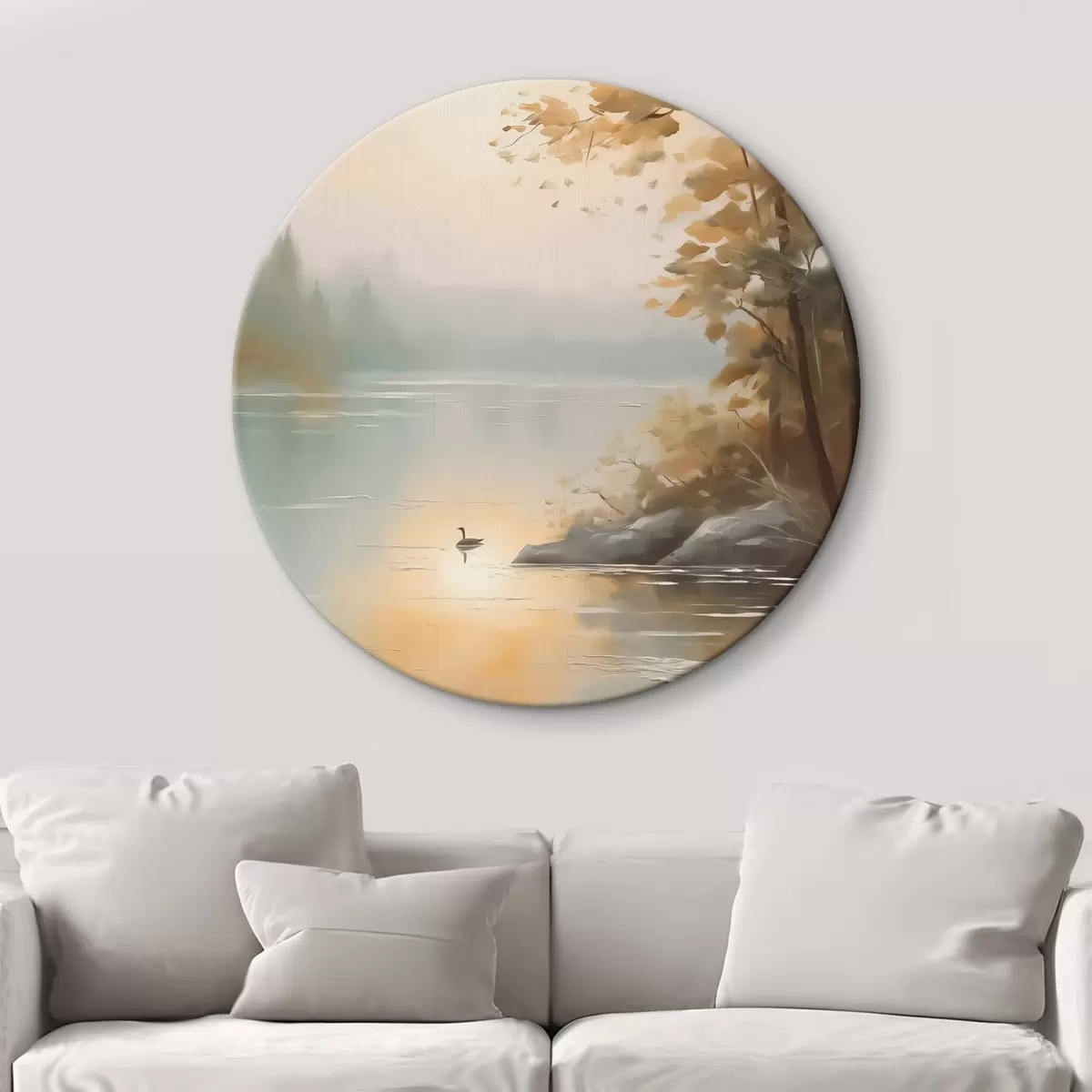 Apaļas gleznas Koks pie dīķa ainava r42757