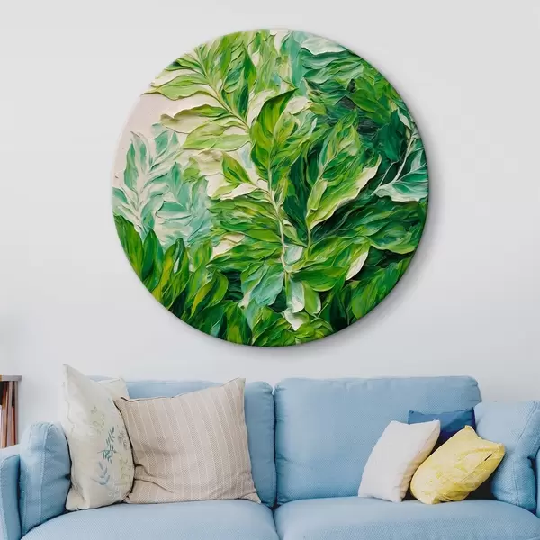 Apaļas gleznas Tropu lapas eļļas gleznošanas stilā r42767