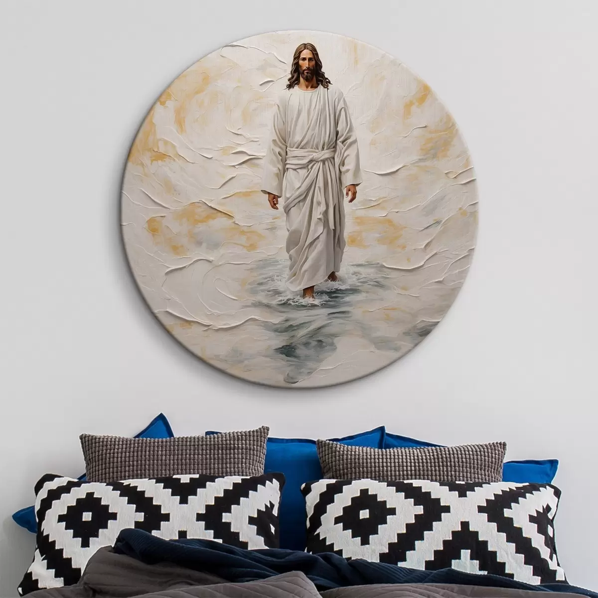 Apaļas gleznas Jerur Chrirt staigāšana pa ūdeni rtyle eļļas glezna r42769