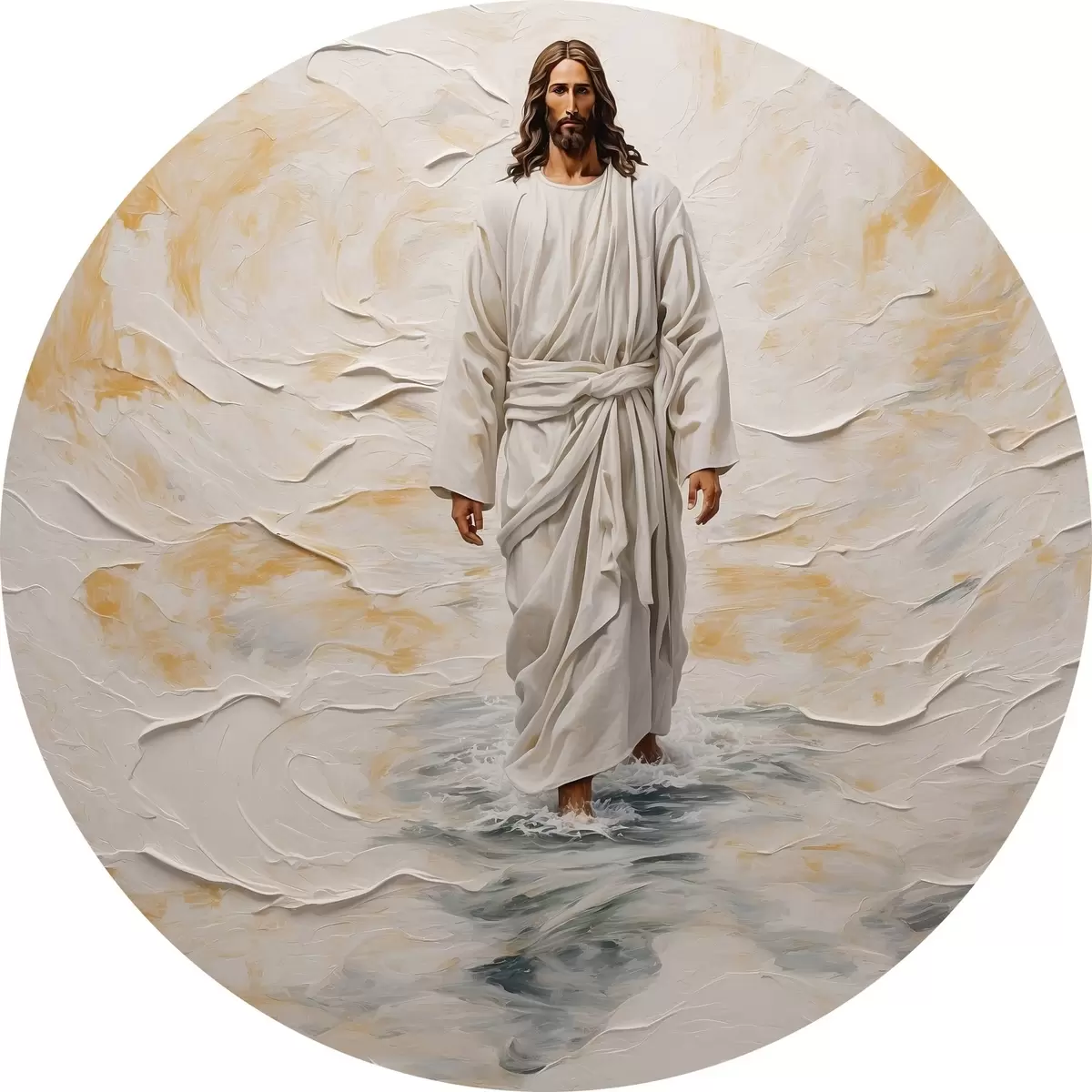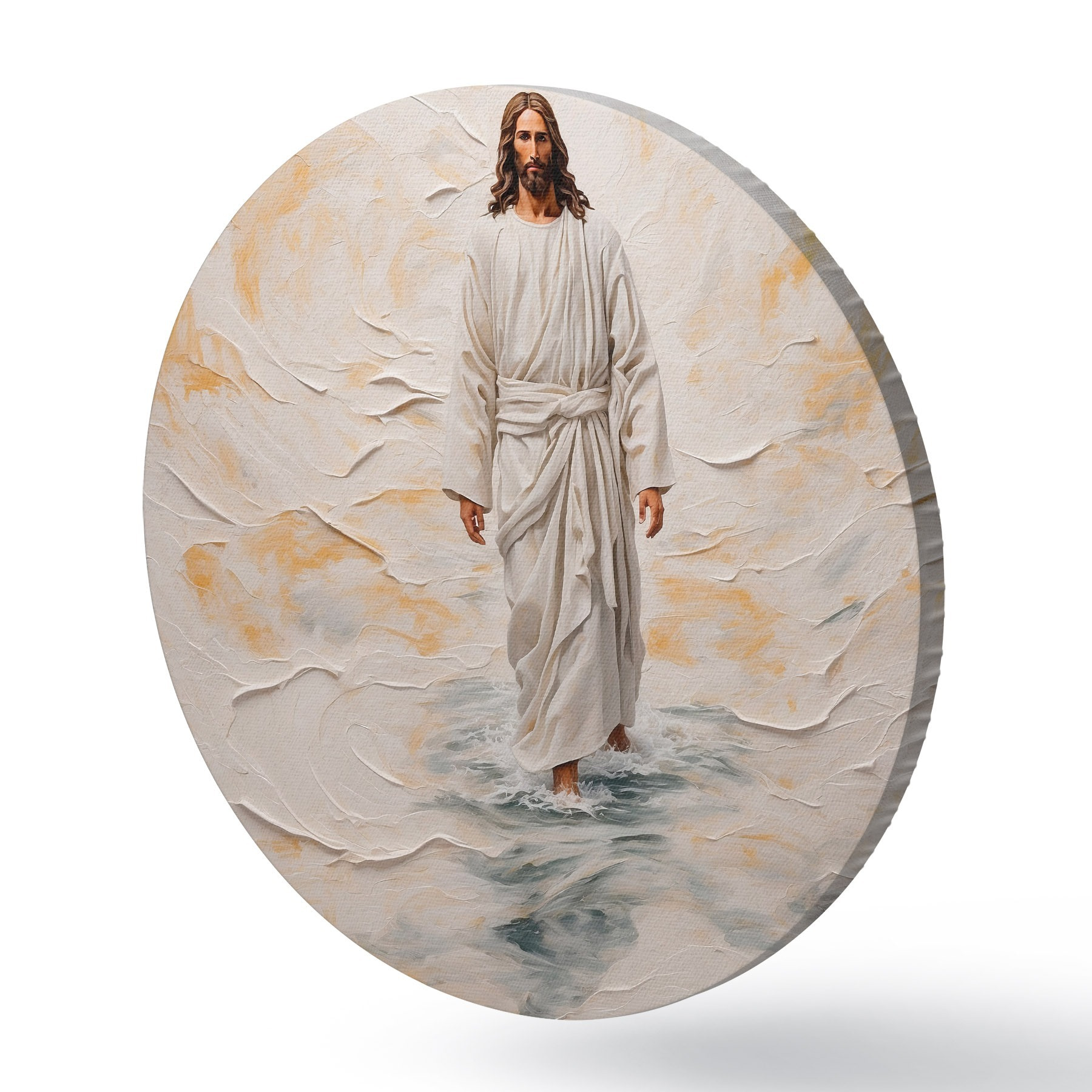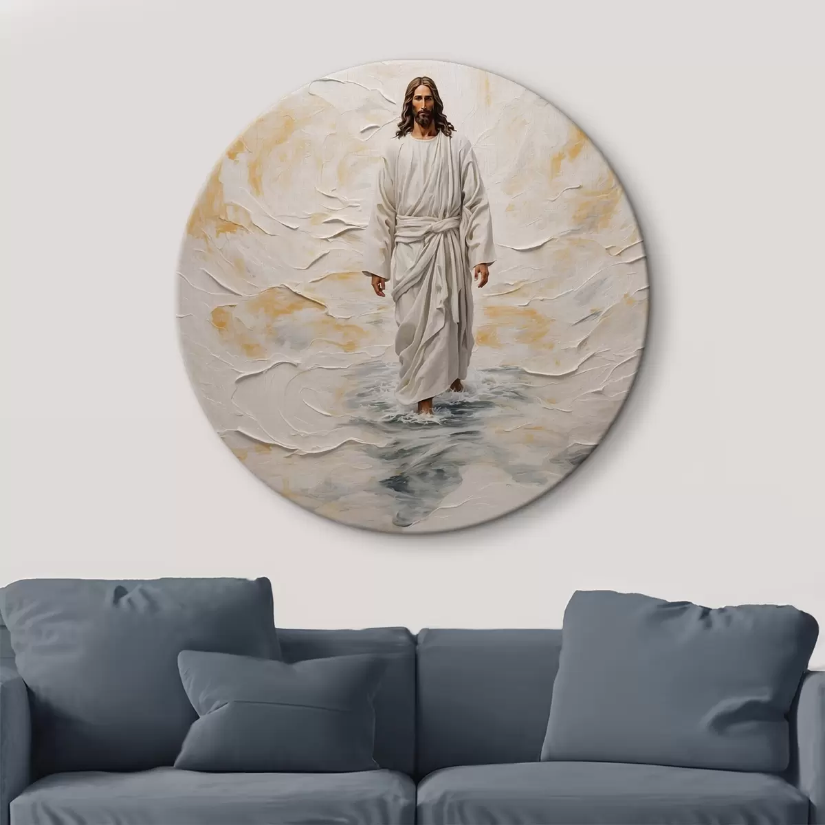 Apaļas gleznas Jerur Chrirt staigāšana pa ūdeni rtyle eļļas glezna r42769
