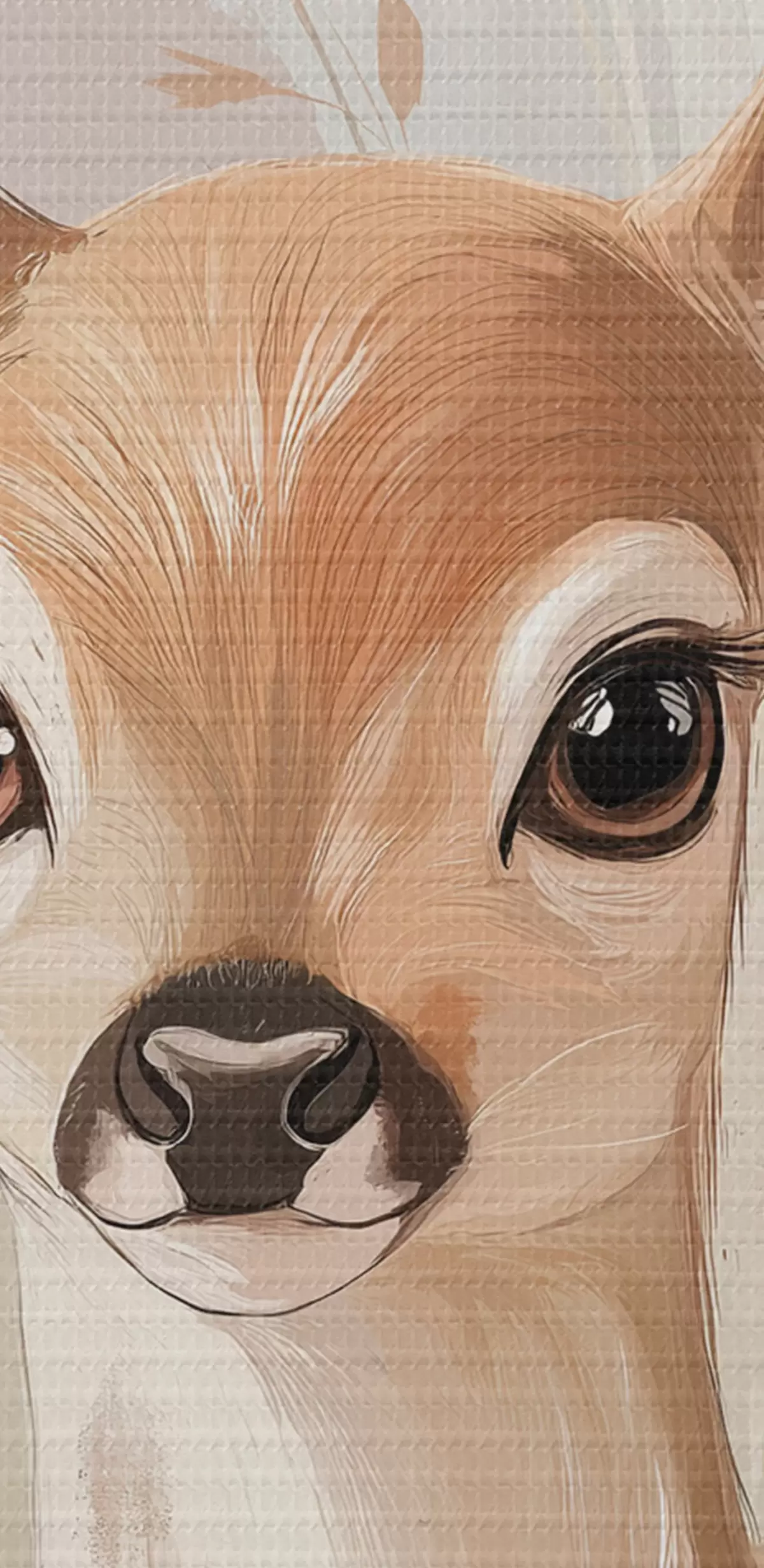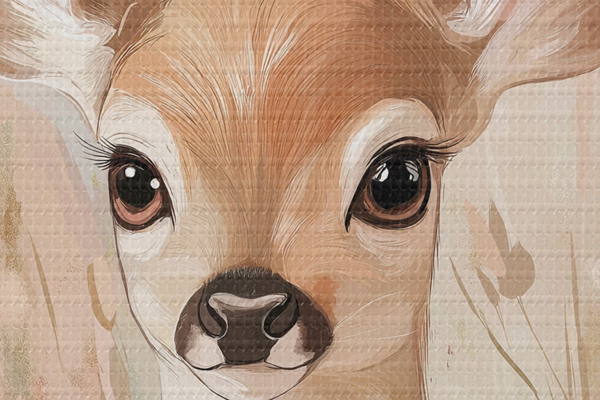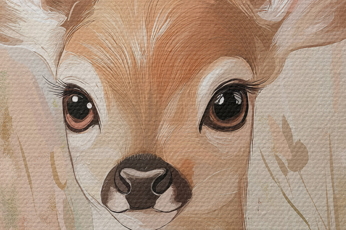 Attēls Mazs briedis vasaras pļavā, akrila stila zīmējums, pasteļrozā un smilškrāsas krāsas Nr r42781