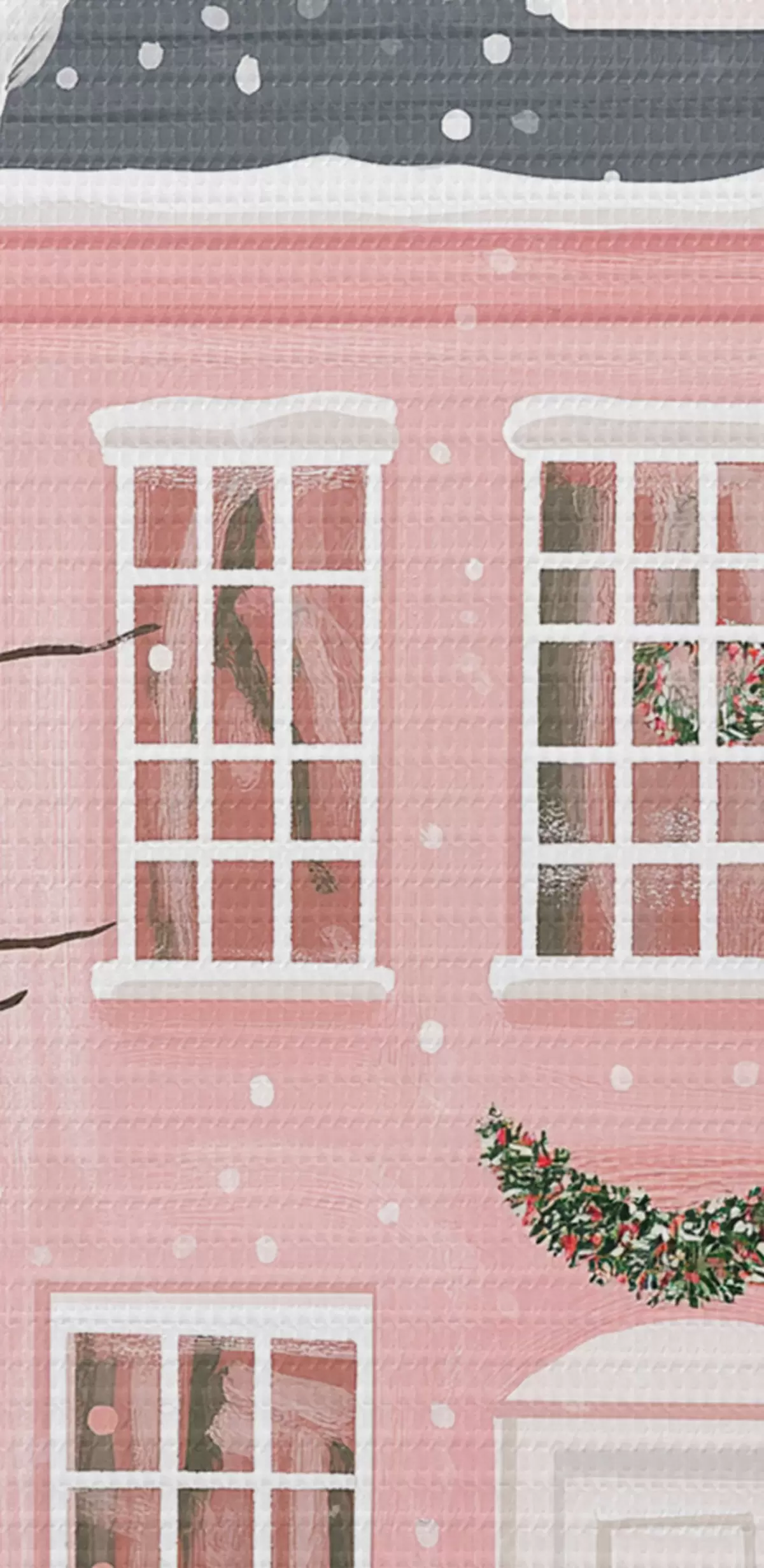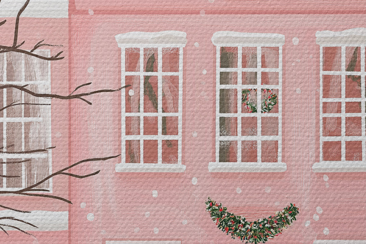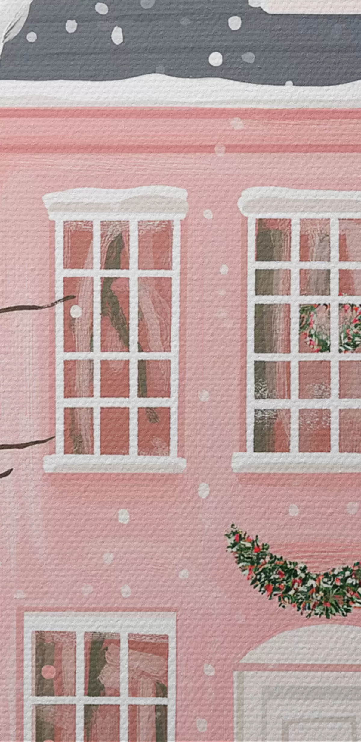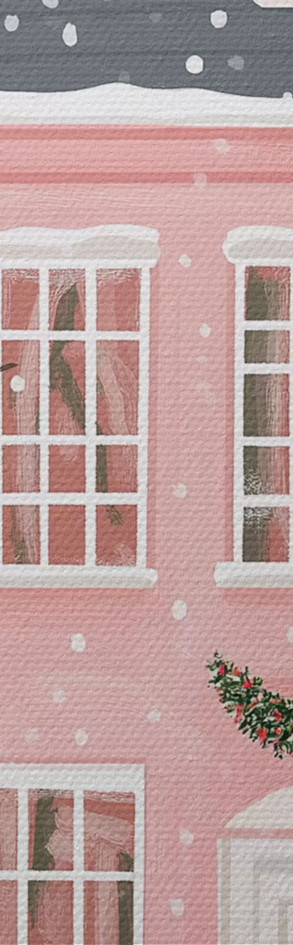 Attēls Jauki rozā mājas, priedes, ziemas ainavas Nr r42791