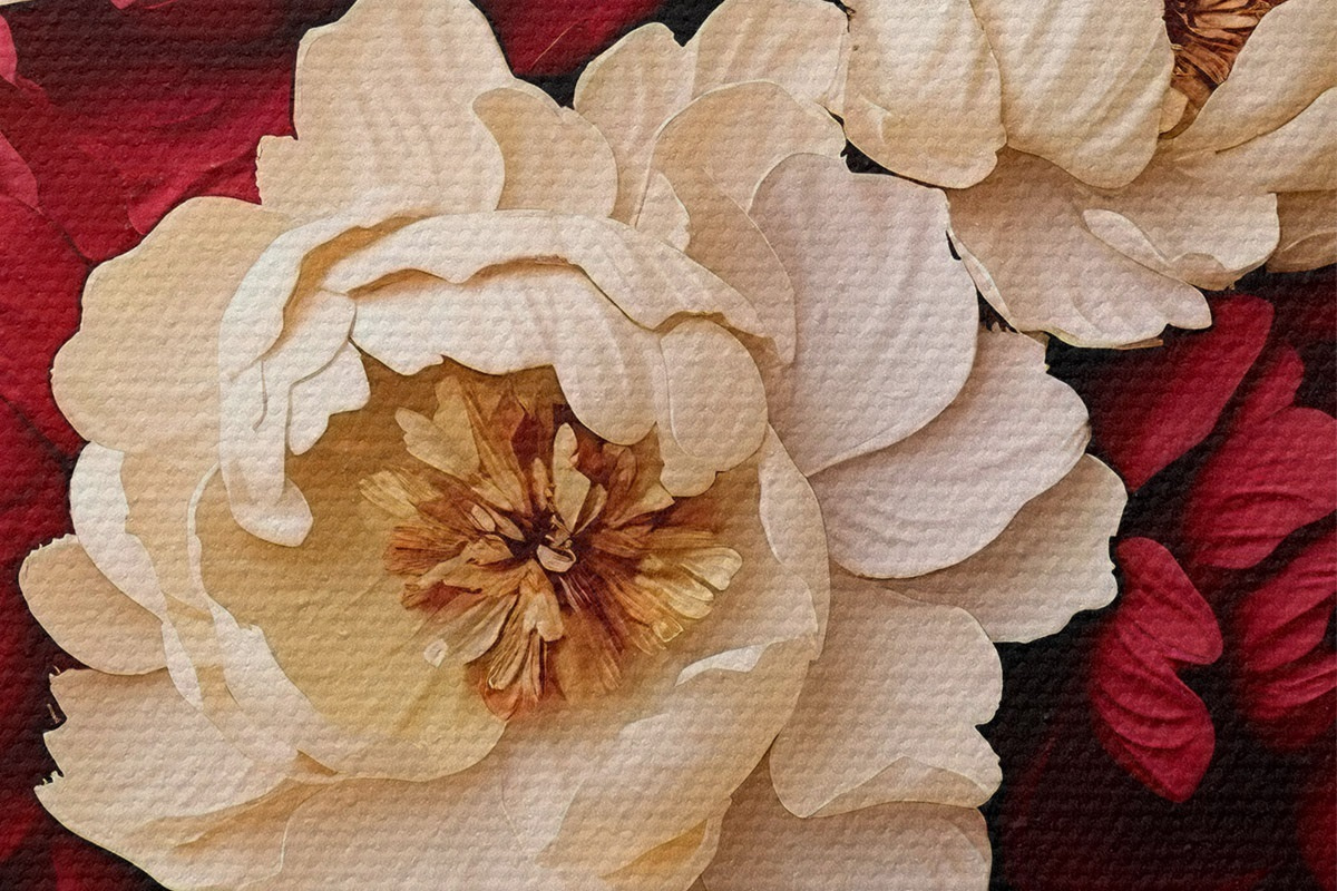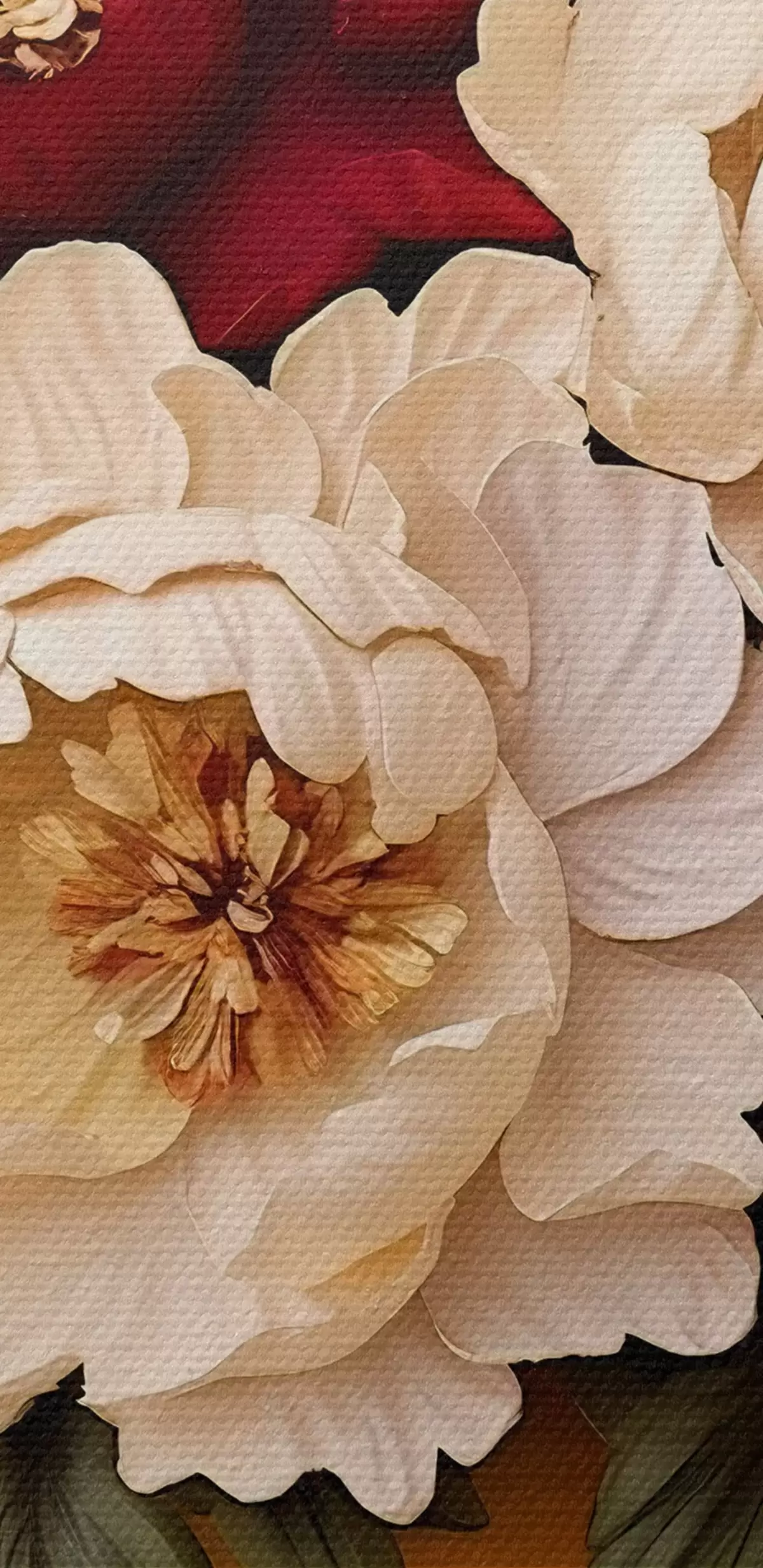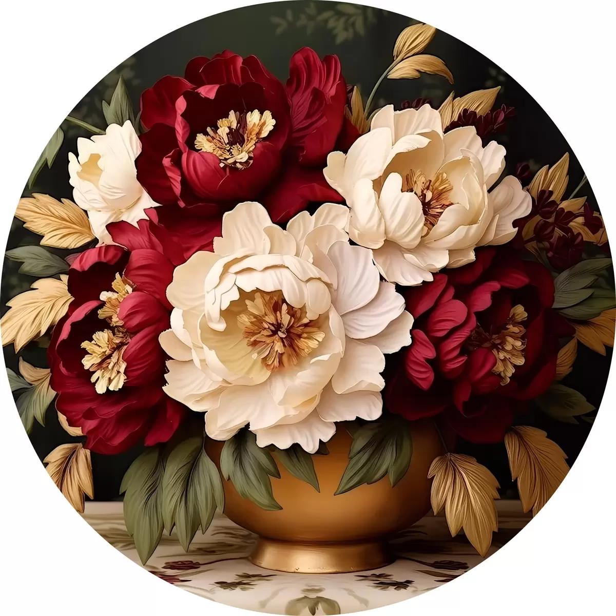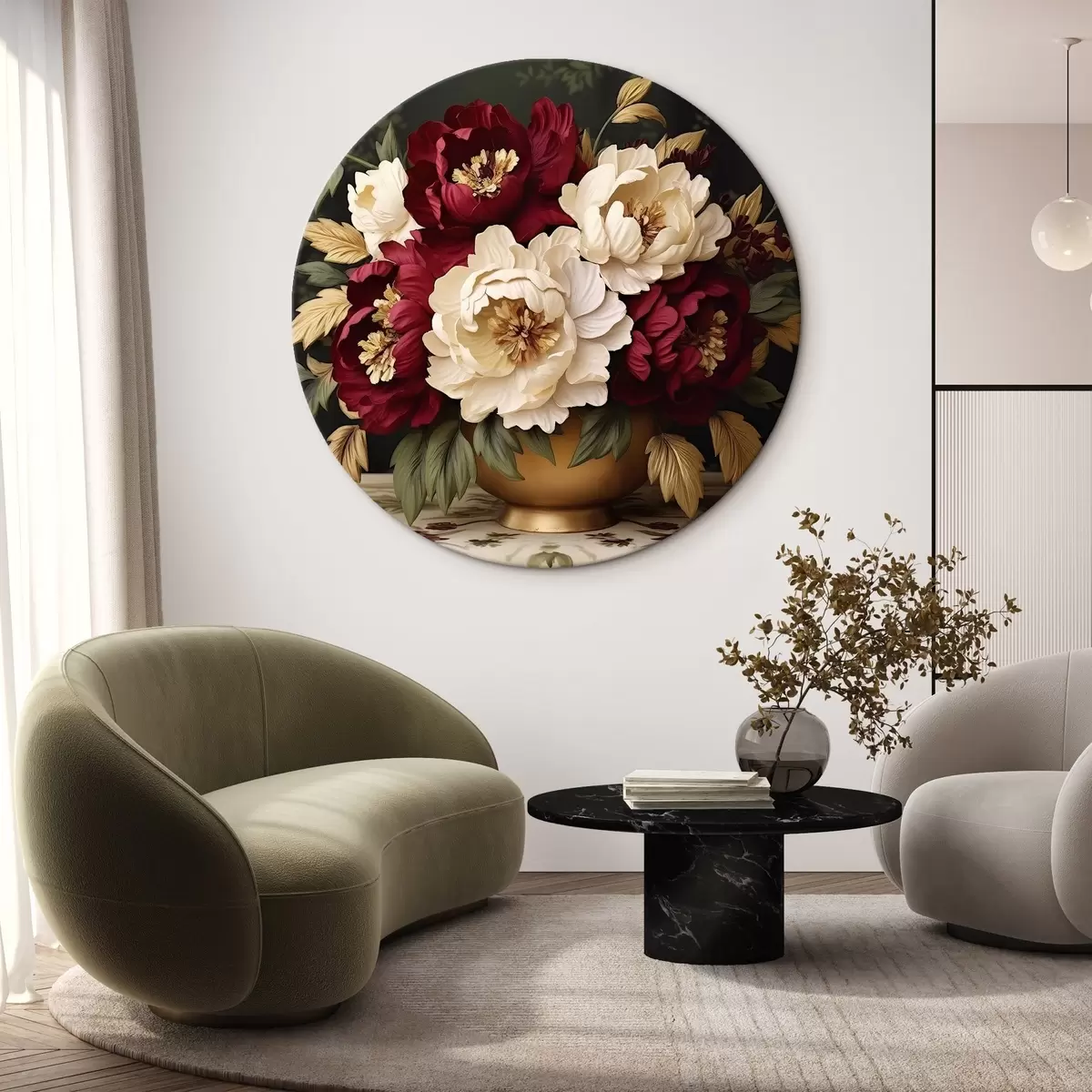 Apaļas gleznas Sarkanas un baltas peonijas vāzē r42820