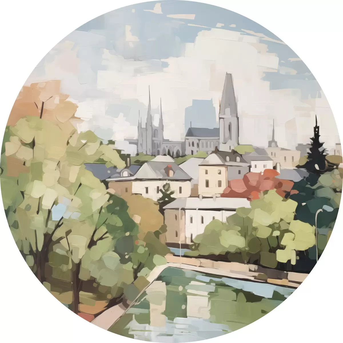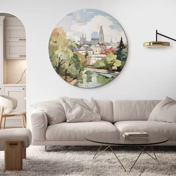 Apaļas gleznas Abstraktā pilsētas ainavas imitācija glezniecība r42834