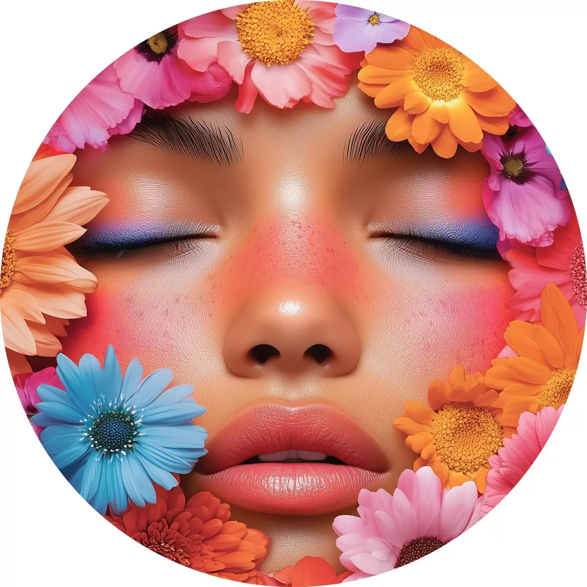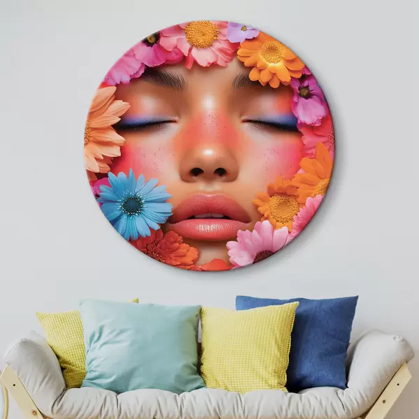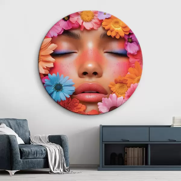 Apaļas gleznas Meitenes seja ziedos r42856