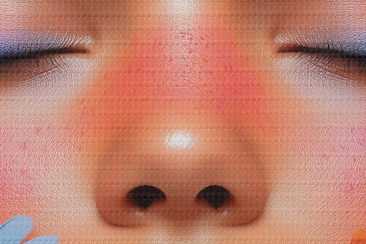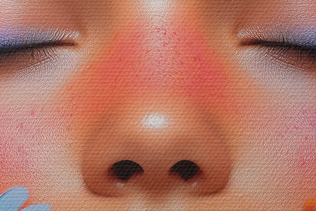 Smalkais diegu pinums uz šī audekla atgādina profesionālu mākslinieku audeklu virsmu.