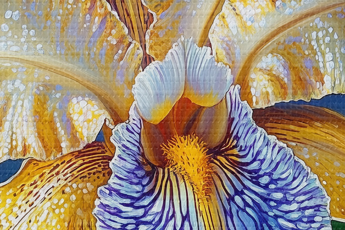 Smalkais diegu pinums uz šī audekla atgādina profesionālu mākslinieku audeklu virsmu.