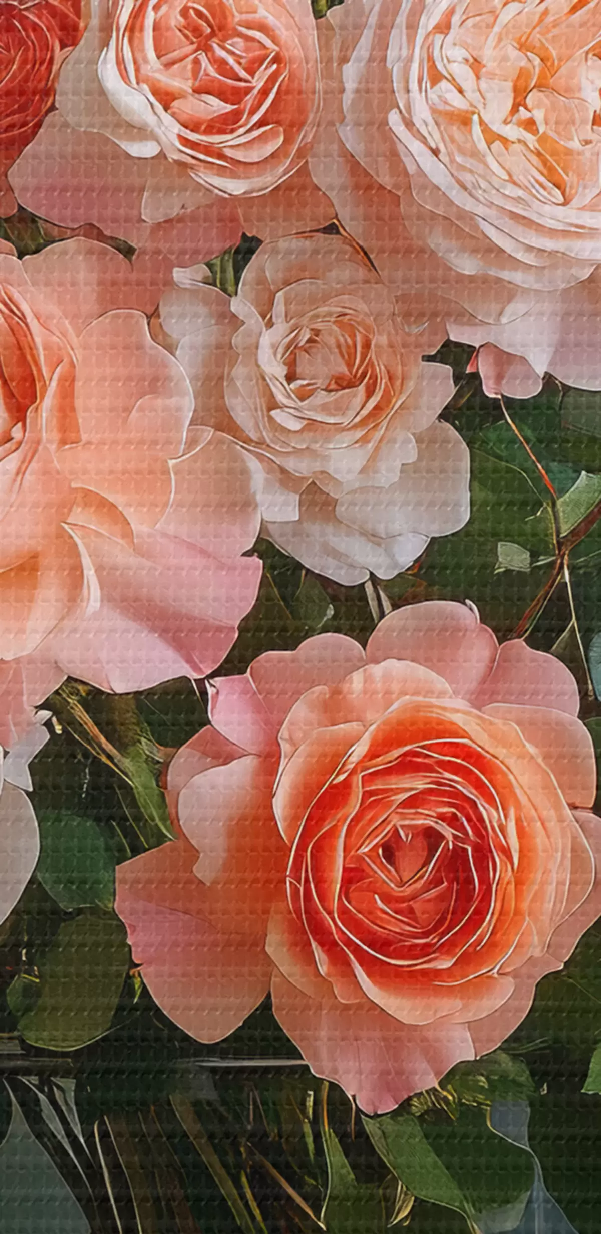 Smalkais diegu pinums uz šī audekla atgādina profesionālu mākslinieku audeklu virsmu.