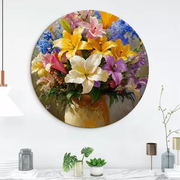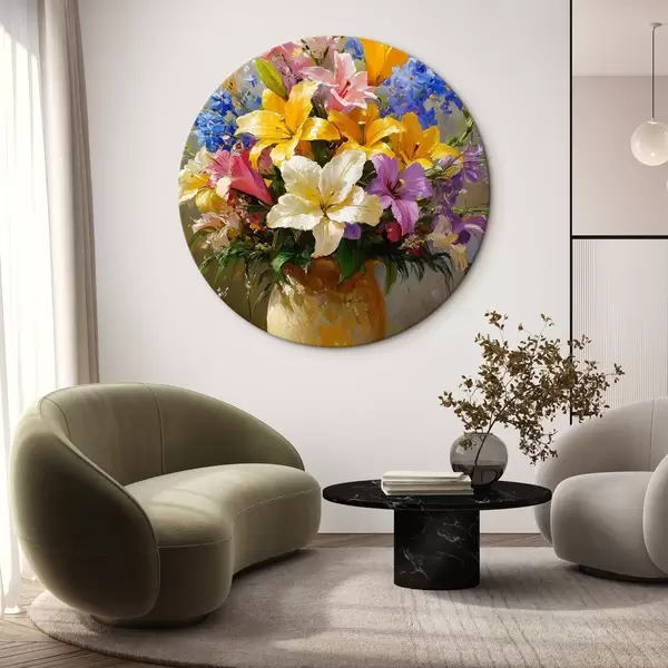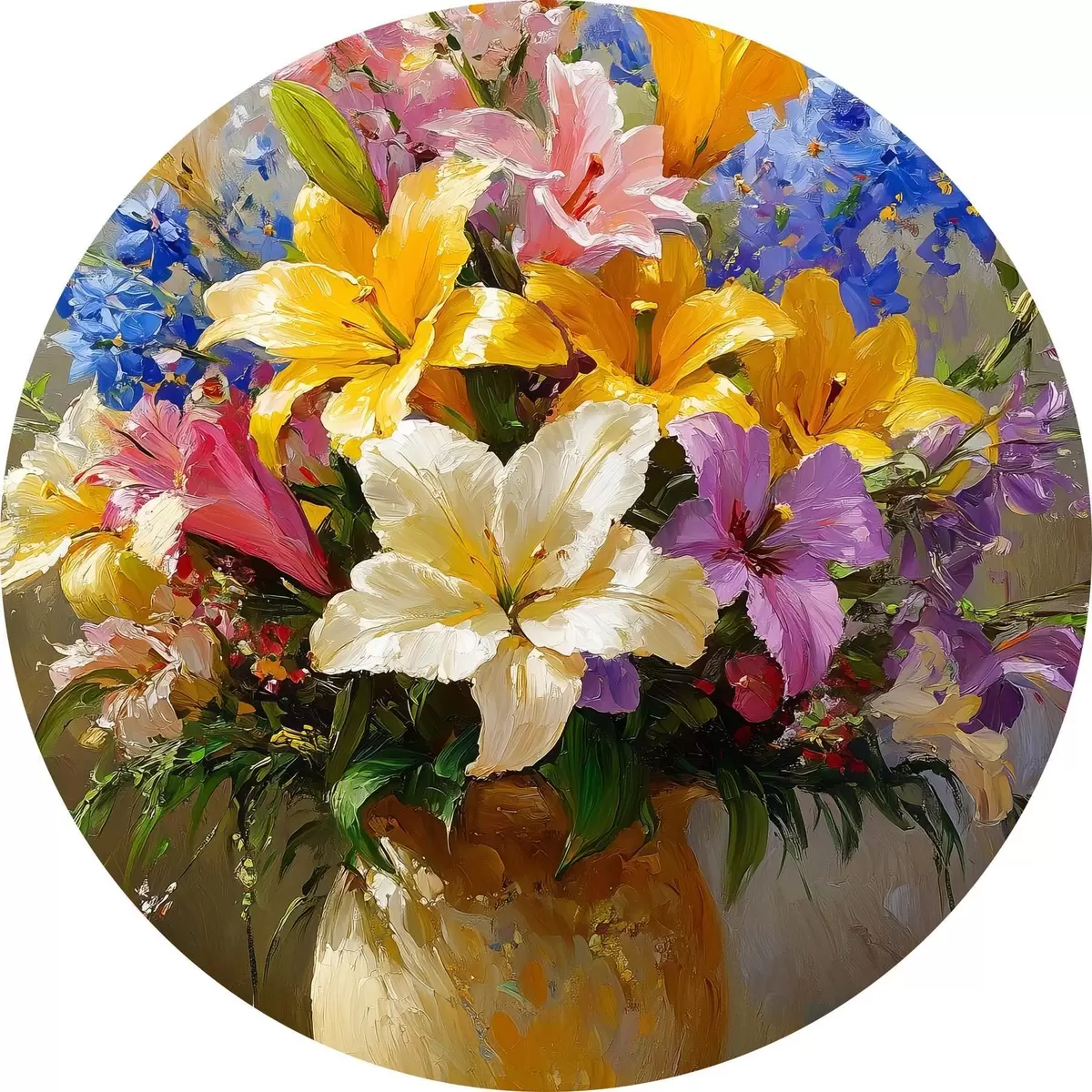 Apaļas gleznas Spilgts pušķis eļļas krāsu stilā r42864