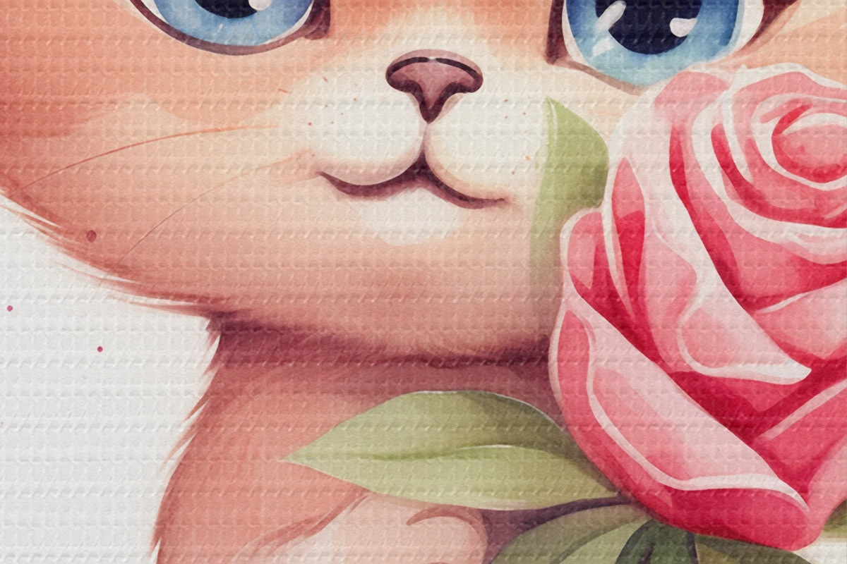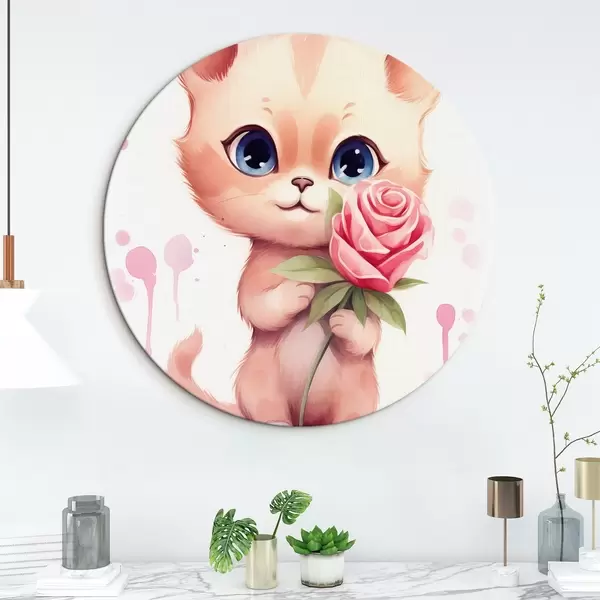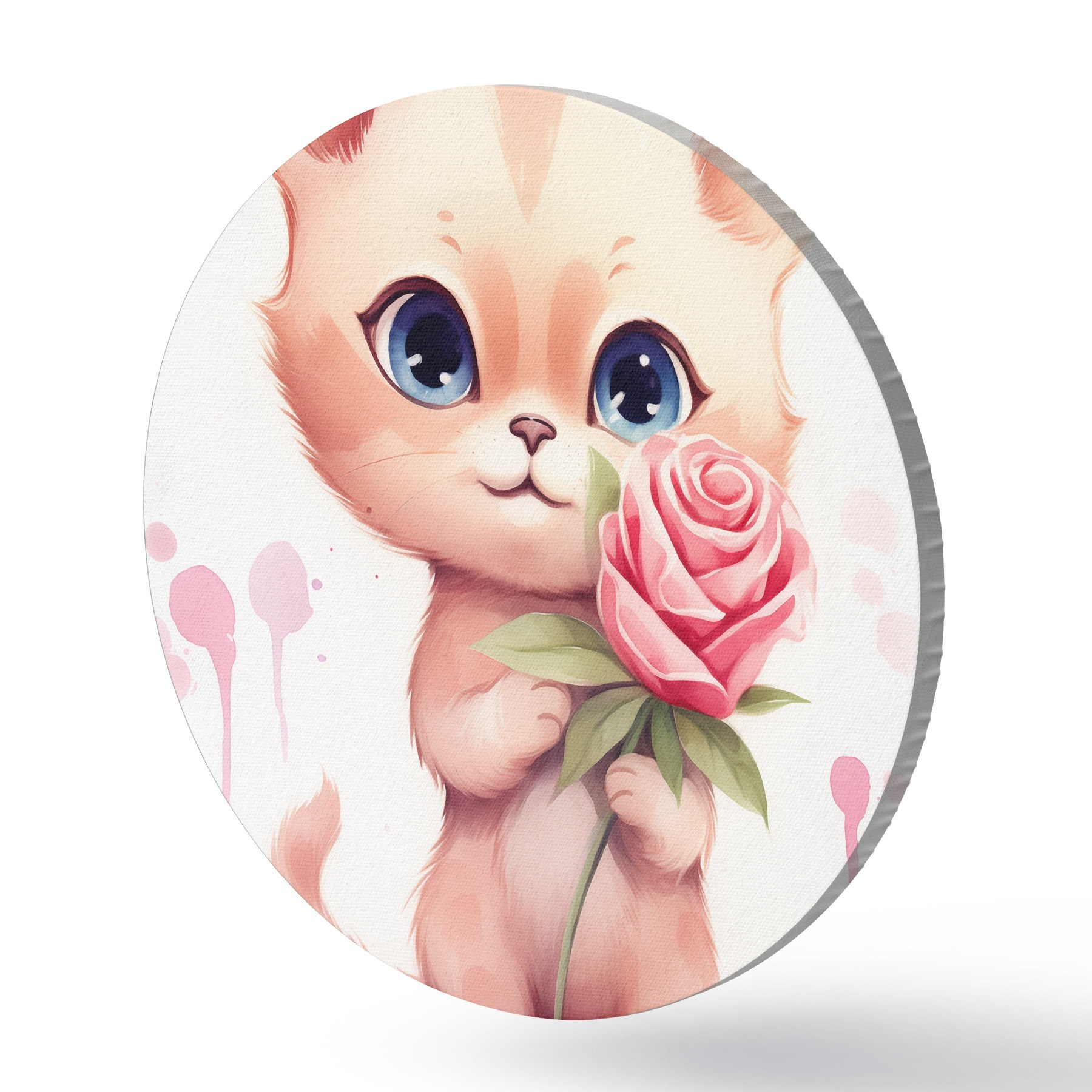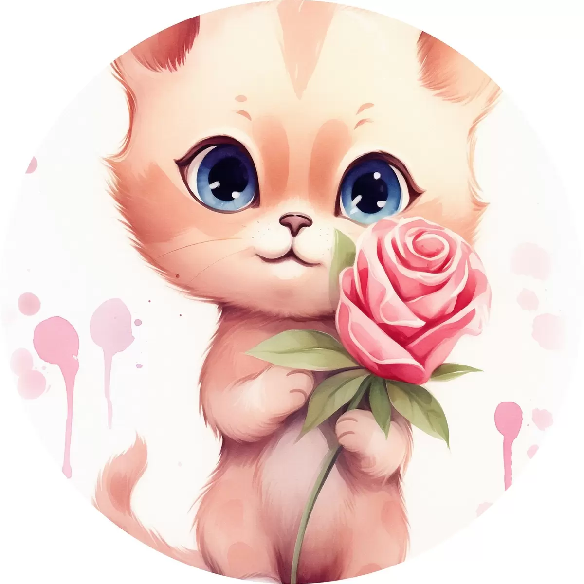 Apaļas gleznas Gudrs kaķis ar rozi r42866