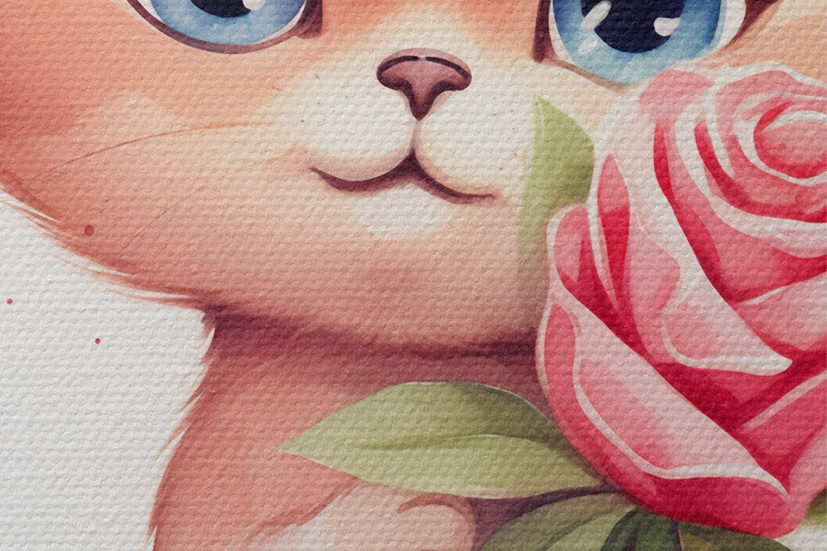 Attēls Gudrs kaķis ar rozi Nr r42866