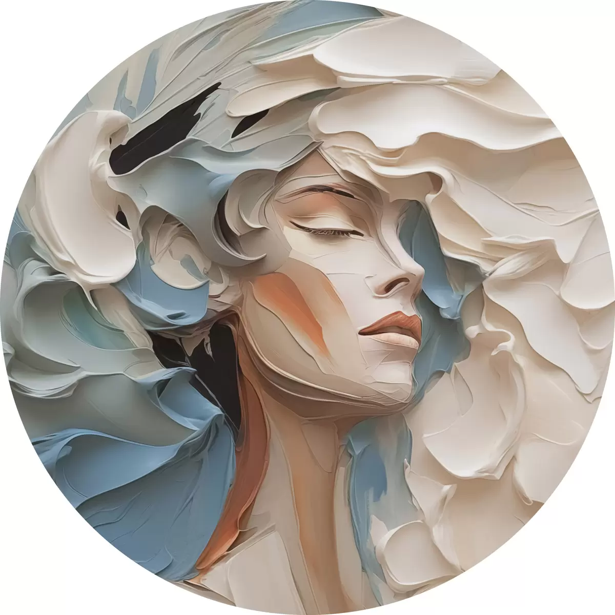 Apaļas gleznas Meitenes portrets abstrakta glezniecības imitācija r42904