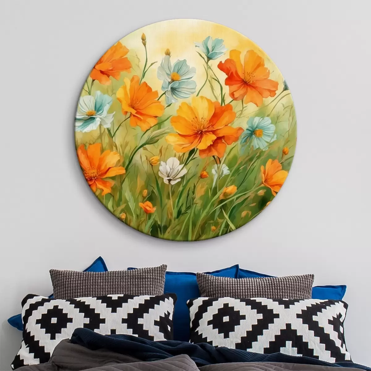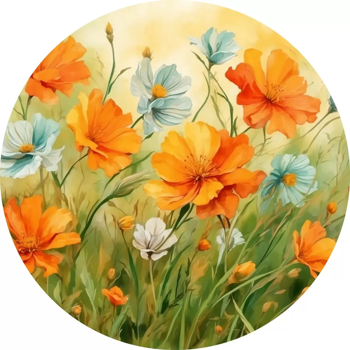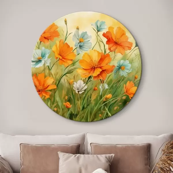 Apaļas gleznas Ziedu un augu lauks akvareļglezniecības stilā r42916