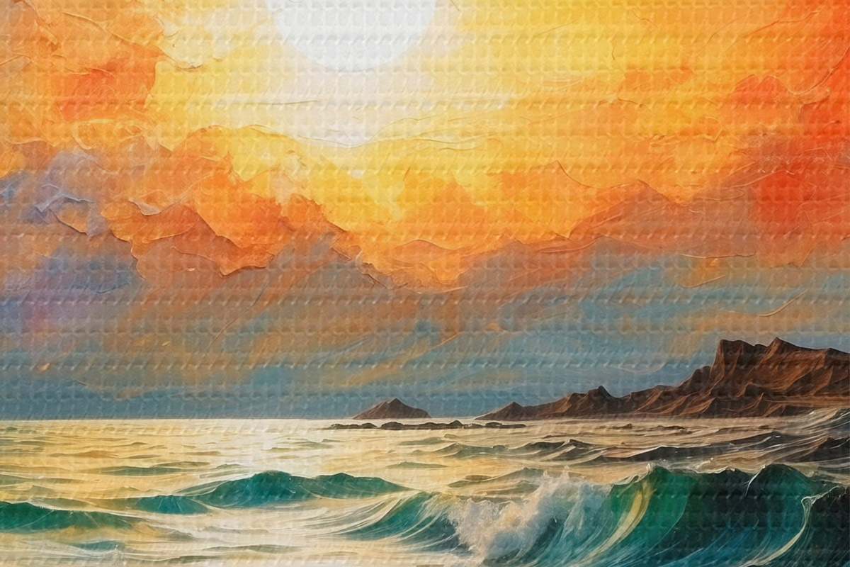 Smalkais diegu pinums uz šī audekla atgādina profesionālu mākslinieku audeklu virsmu.